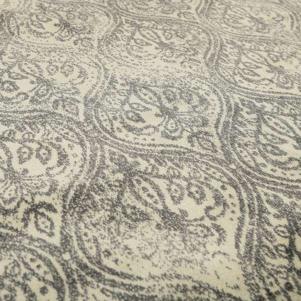 This upholstery fabric features a luxurious medallion pattern in shades of grey and beige, made from soft velvet material. Ideal for creating elegant Roman blinds, this fabric offers both style and comfort for your home. Enhance your windows with a touch of sophistication and warmth.