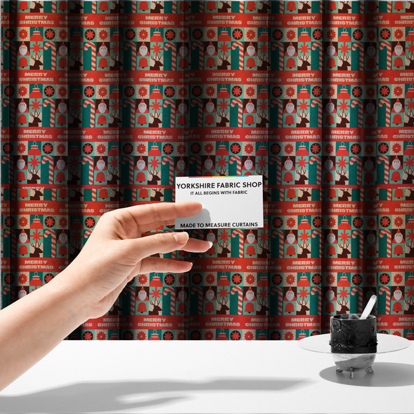 Transform your windows into festive focal points with this vibrant modern Christmas icon fabric. Featuring playful holiday motifs in a contemporary design, DP-71 brings seasonal cheer to any room without the kitsch. Perfect for made-to-measure curtains, this upholstery-weight fabric offers durability and style in equal measure. Whether you're dressing your living room or adding a touch of yuletide fun to a bedroom, this versatile textile works beautifully year after year. Create custom curtains that reflect your personality and celebrate the season in style.