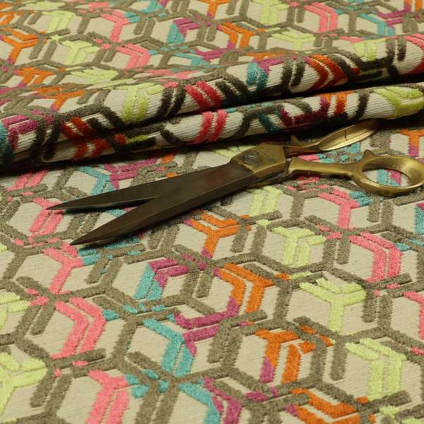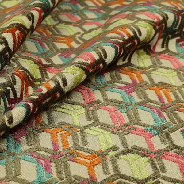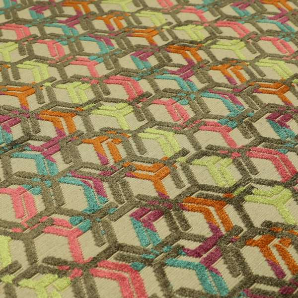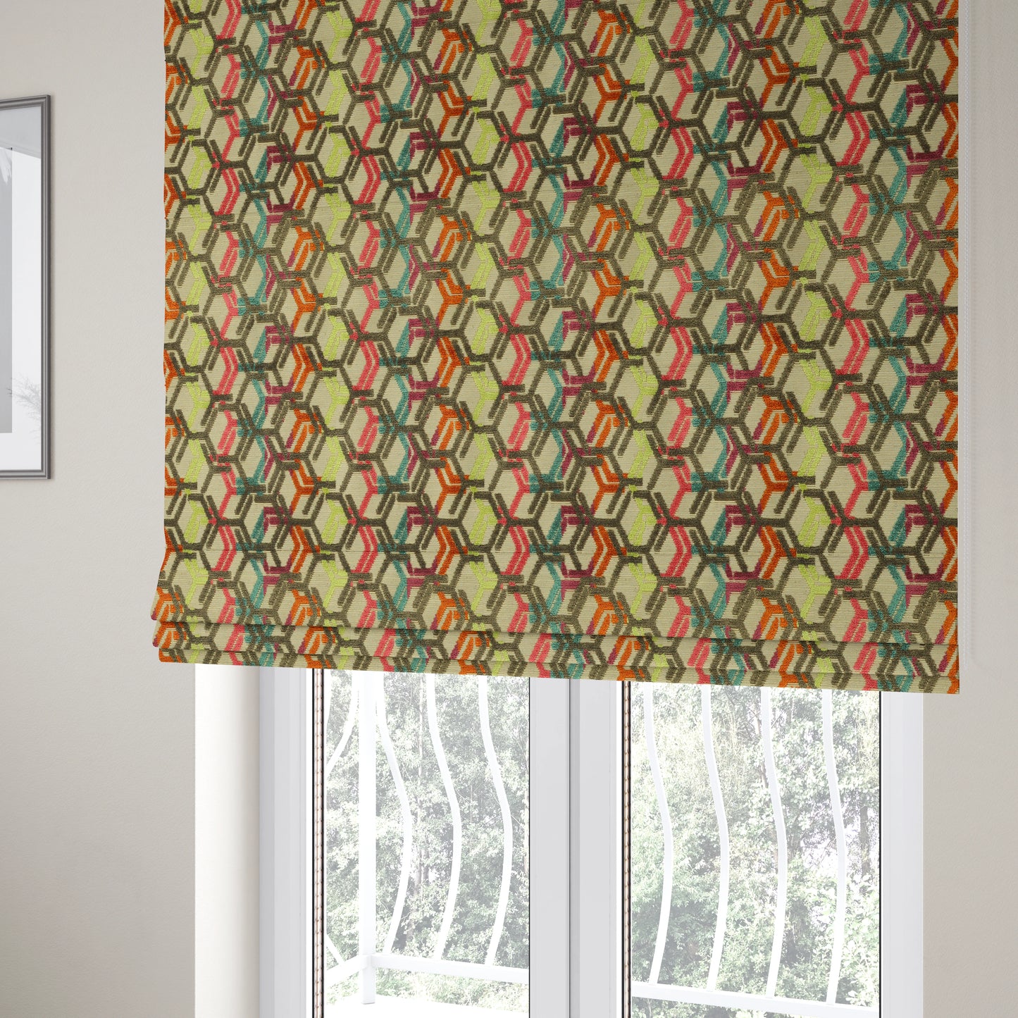 Upgrade your home decor with our Modern and stylish Roman blinds. The cut velvet material features a unique geometric pattern in vibrant, multi-coloured hues, adding a touch of sophistication to any room. Elevate your space with these elegant and functional window treatments.