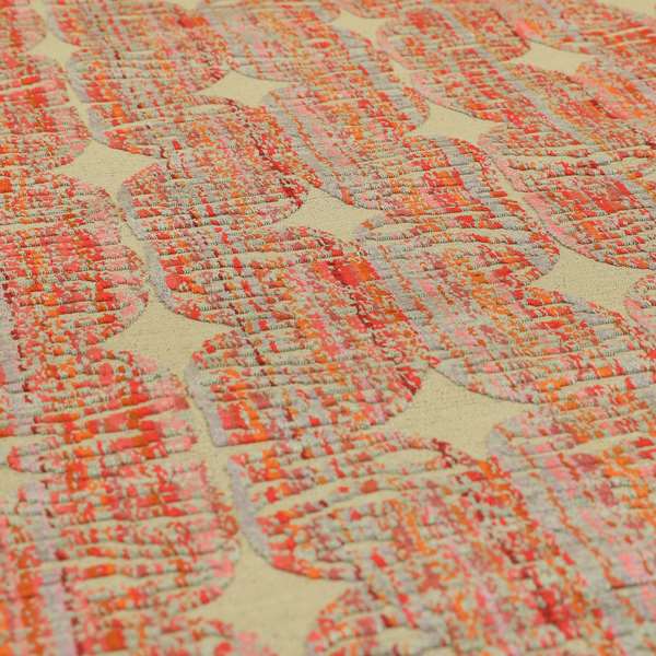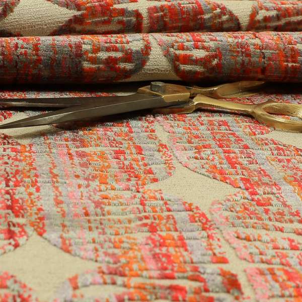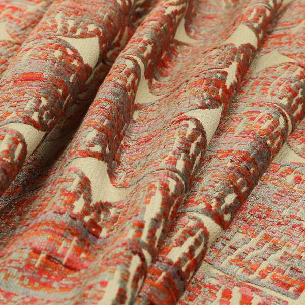 This modern upholstery fabric features a stylish pattern in shades of grey, pink, and red. Made of soft cut velvet, it's perfect for creating elegant and luxurious Roman blinds. Instantly elevate any room with this sophisticated fabric.
