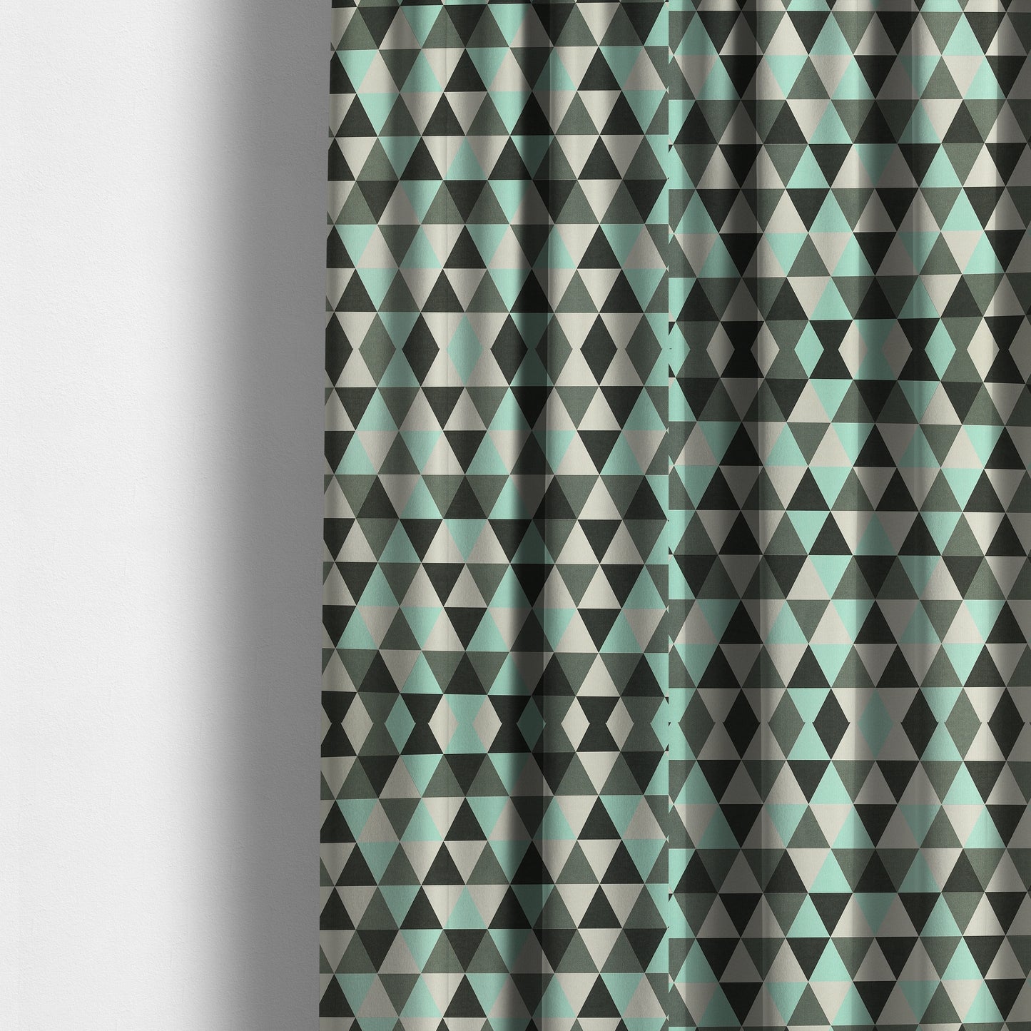 Enhance your home decor with our Monica curtains, featuring a modern and stylish teal grey white black geometric pattern. Our high-quality soft chenille fabric is designed to provide both functionality and elegance. Perfectly tailored to fit your windows, these custom-made curtains are sure to elevate any living space.