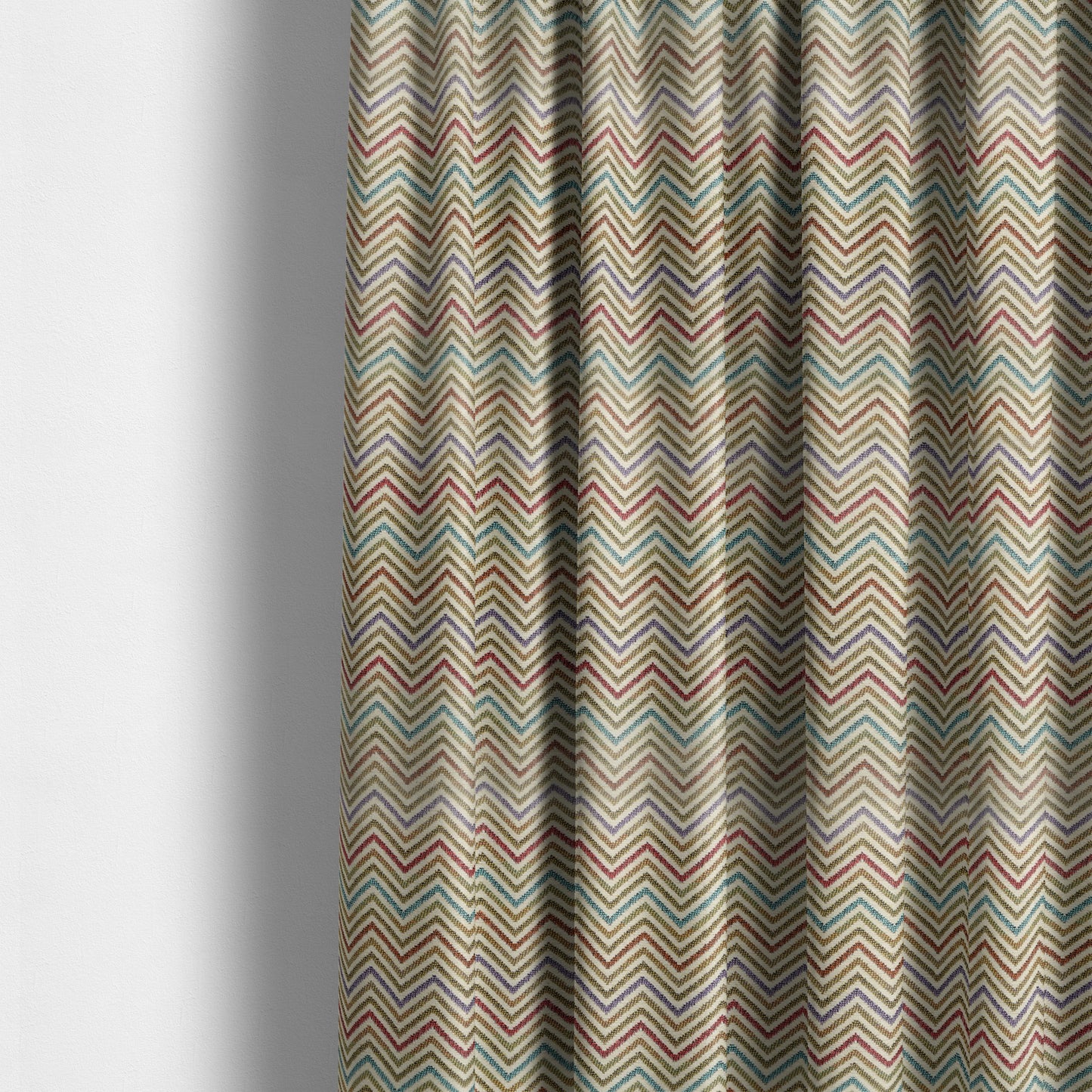 Expertly crafted with a multi-coloured chevron stripe pattern, this soft chenille upholstery fabric is the perfect choice for made-to-measure curtains. Its durable yet luxurious texture adds a touch of elegance to any room. Enjoy both style and functionality with this high-quality fabric.