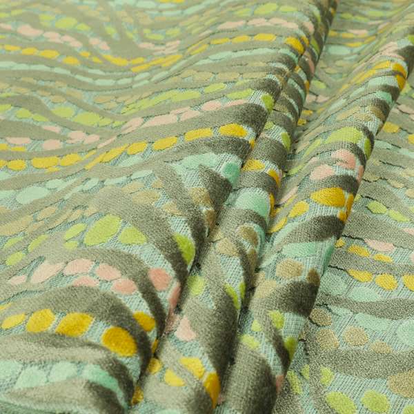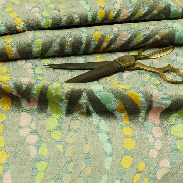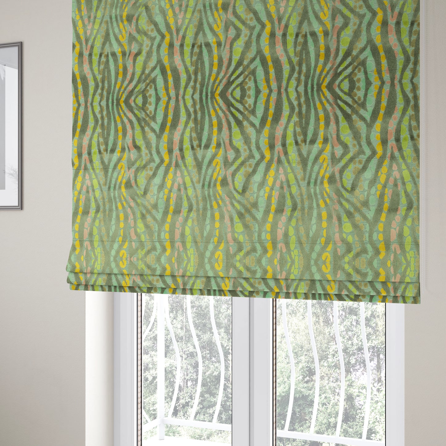 This multicoloured blue background velvet striped spotted pattern upholstery fabric is perfect for creating a luxurious look in your home. Enhance your interior design with these high-quality Roman blinds, adding a touch of elegance and sophistication to any room. Plus, the durable fabric ensures long-lasting beauty for years to come.