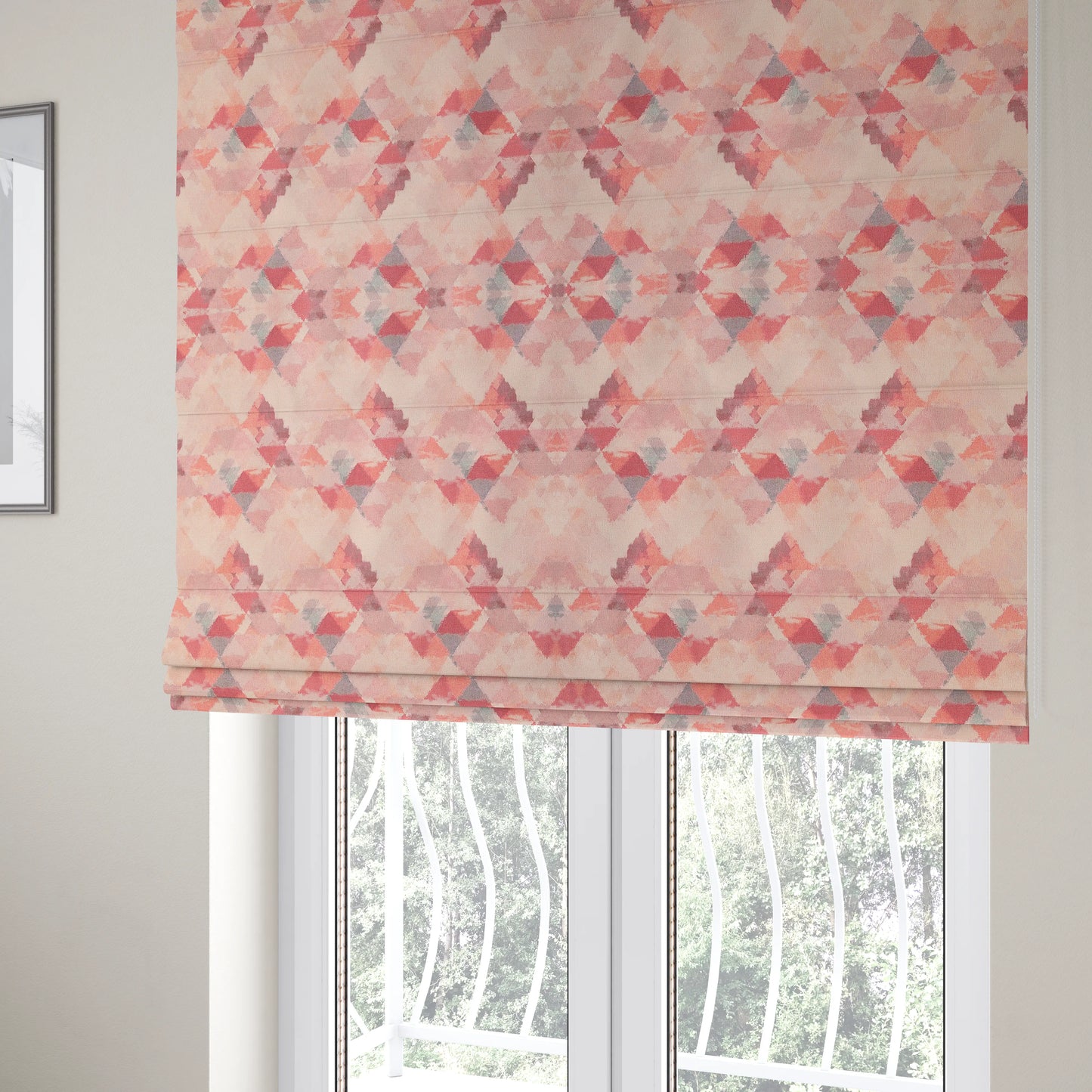 This soft chenille interior fabric features a stunning mystic artistic geometric pattern in a delicate pink blossom colour. Perfect for adding a touch of elegance to any room, these roman blinds offer both style and functionality. The high-quality material ensures durability and provides a cozy atmosphere.
