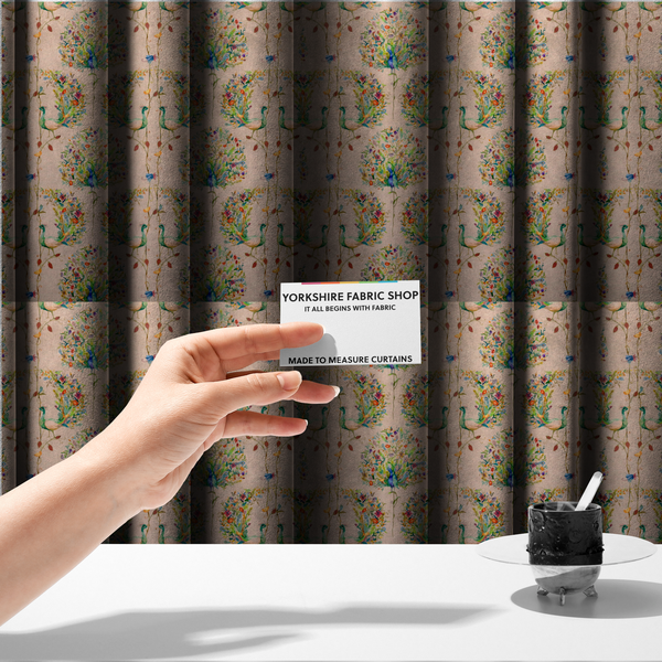 Transform your windows into a enchanted sanctuary with this captivating peacock-inspired upholstery fabric. Featuring intricate garden motifs in rich, jewel-toned hues, DP-52 brings an air of whimsy and elegance to any room. Perfect for made-to-measure curtains, this versatile fabric drapes beautifully whilst adding a touch of mystical charm. Whether you're channelling bohemian flair or creating a statement focal point, this showstopper design invites nature's most majestic bird into your home with playful sophistication.