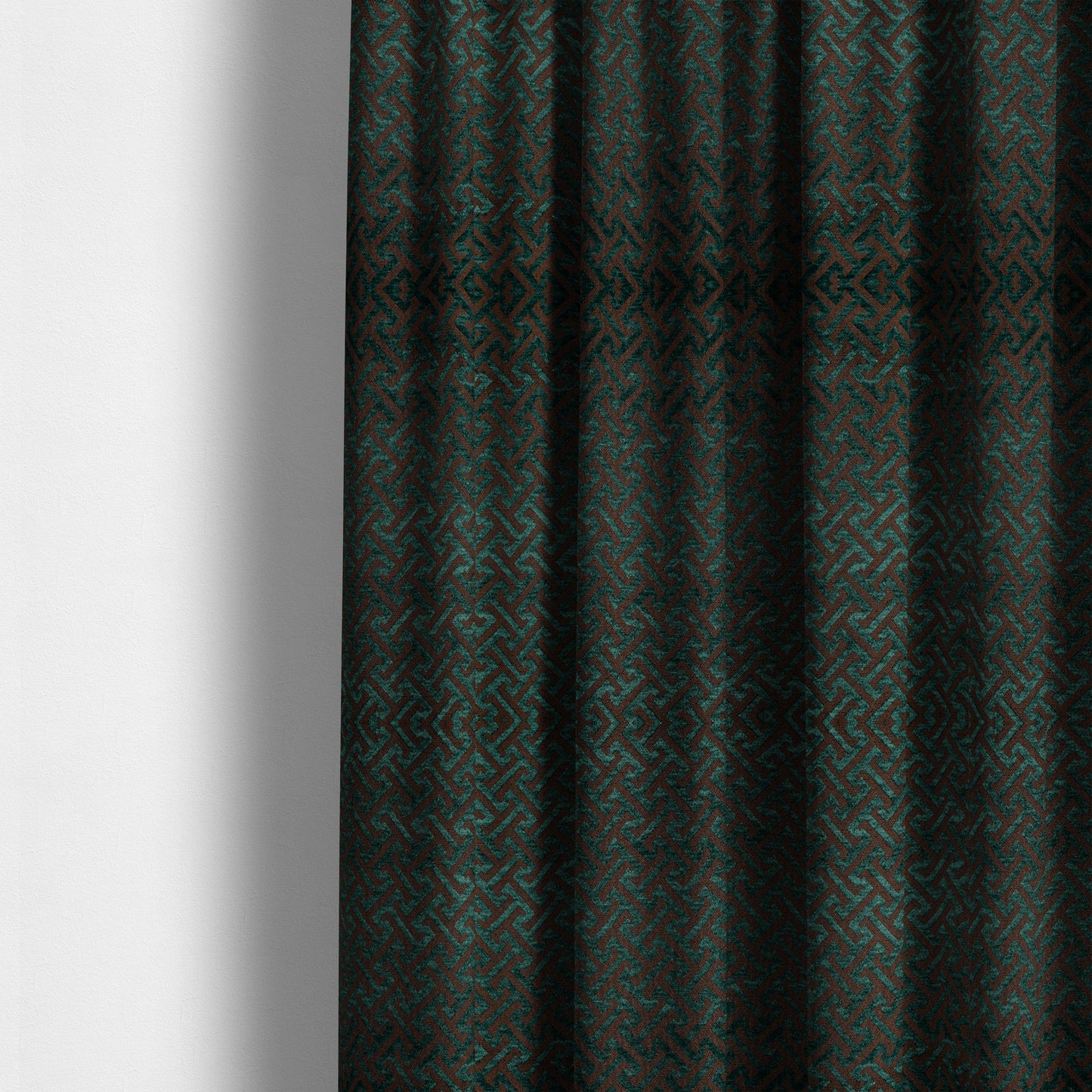 Upgrade your home decor with our Napier Greek key geometric pattern teal chenille upholstery fabric. The elegant design and high-quality chenille material adds a touch of sophistication to any room. Perfect for customizing your windows with our made to measure curtains.