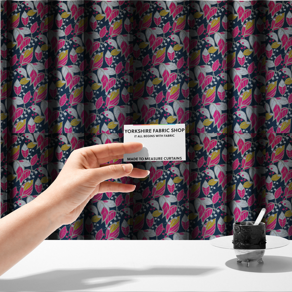Transform your windows into a botanical masterpiece with this stunning navy upholstery fabric featuring vibrant foliage patterns. The rich navy ground provides the perfect canvas for eye-catching bright florals, bringing energy and elegance to any room. Ideal for made-to-measure curtains, this versatile DP-12 fabric works beautifully in living spaces, bedrooms, or studies. Whether you're after a statement look or subtle sophistication, this pattern strikes the perfect balance between bold and refined. Create custom curtains that truly reflect your style and personality.