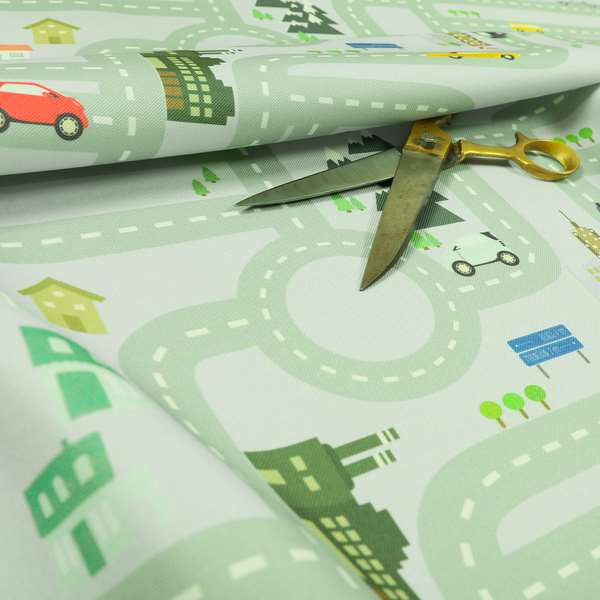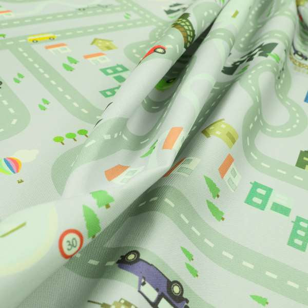 This children's play mat features a vibrant purple upholstery fabric with a playful car pattern. Its clear road map design encourages imaginative play while providing a durable surface for little ones. Perfect for Roman blinds, this printed fabric adds a fun touch to any room.