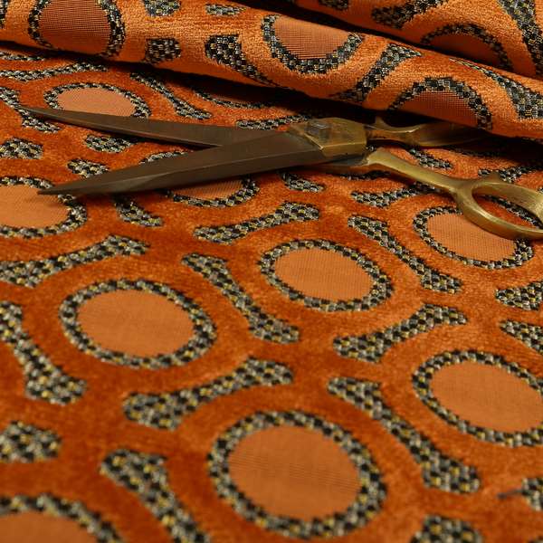 This modern patterned velvet upholstery fabric is perfect for adding a touch of sophistication to any room. The vibrant orange color is uniformed and eye-catching, while the geometric design adds a contemporary flair. Ideal for Roman blinds, this fabric will elevate your home decor with its luxurious texture.