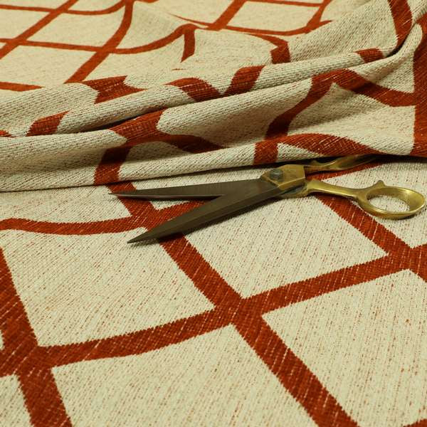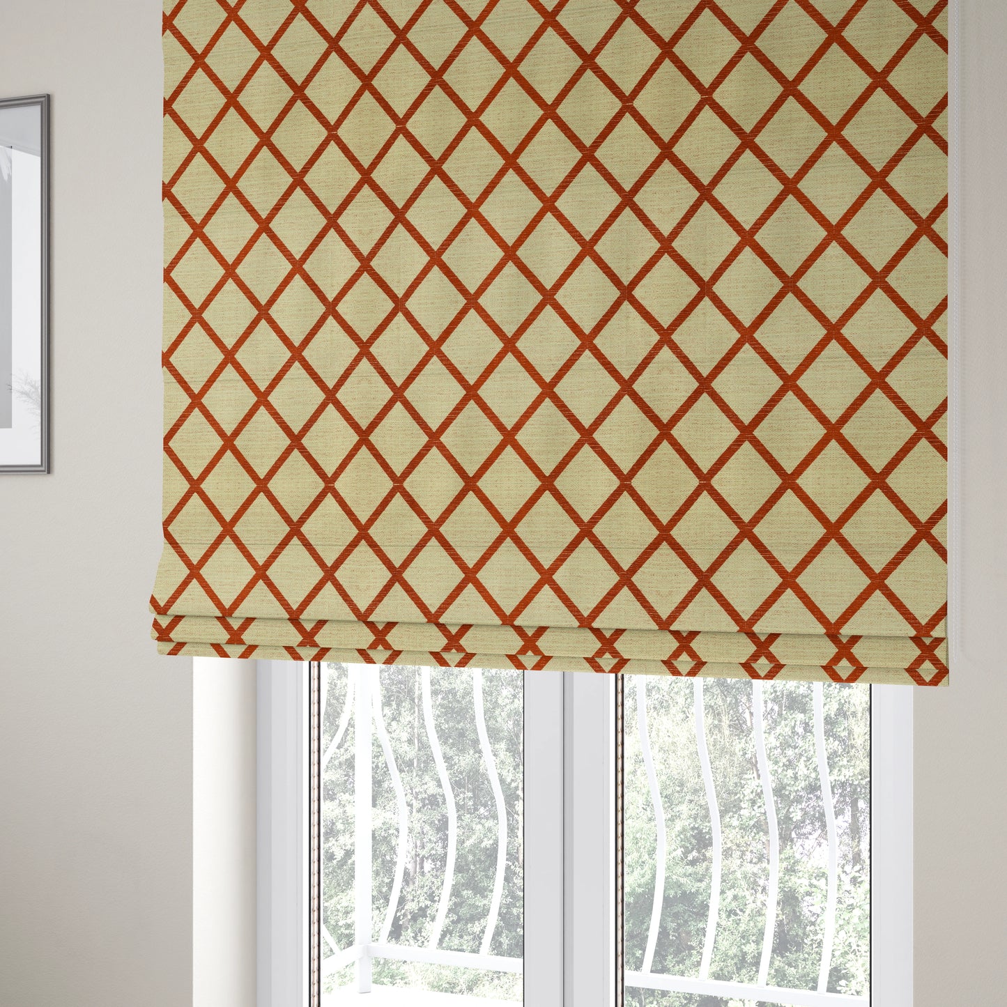 Upgrade your home decor with our Orange cream geometric pattern soft chenille furnishing fabric Roman blinds. The luxurious chenille fabric offers a soft and comfortable touch, while the intricate geometric pattern adds a touch of elegance. Perfect for any room, these blinds will provide both style and privacy.