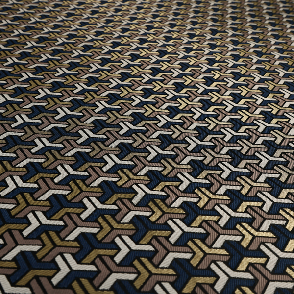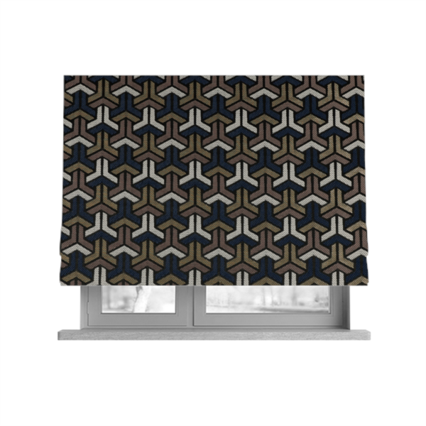 Discover the perfect fabric for your Roman blinds with our Oslo geometric pattern upholstery fabric. The blue, gold, and black tones add a touch of elegance to any room while the geometric design adds visual interest. Made with the highest quality materials, this fabric is durable and easy to clean, making it the ideal choice for any home.