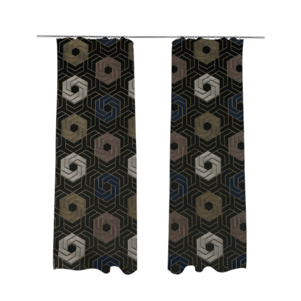 Expertly crafted with a geometric pattern, the Oslo upholstery fabric effortlessly combines shades of blue, gold, and black for a contemporary feel. Perfect for made-to-measure curtains, this fabric adds a touch of sophistication to any room. Trust in its quality and style for a lasting statement.