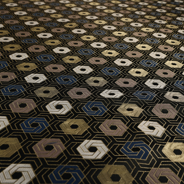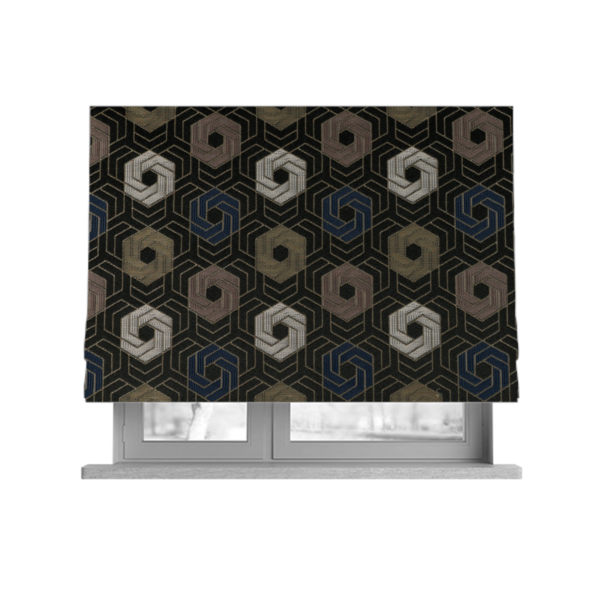 Explore the beauty of geometric patterns with our Oslo upholstery fabric. With a striking combination of blue, gold, and black tones, this fabric adds a touch of elegance to any space. Perfect for Roman blinds, enhance the style and functionality of your home with this high-quality fabric.