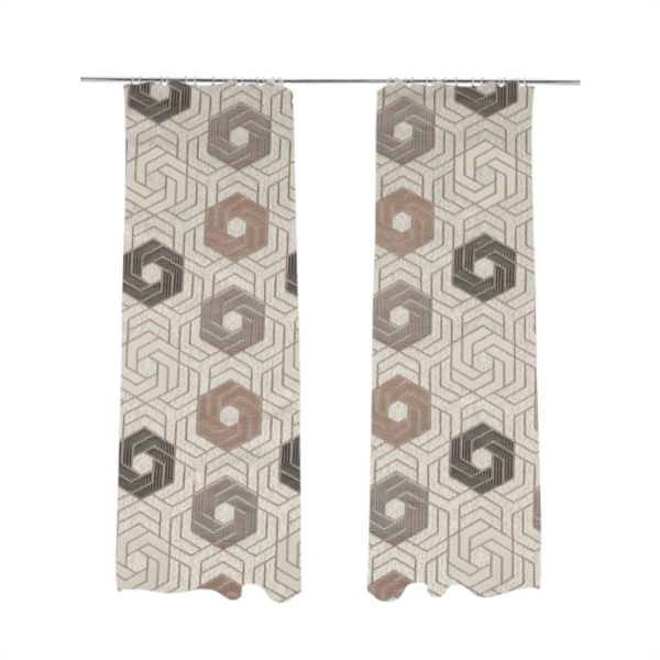 This Oslo geometric pattern fabric showcases a blend of grey, cream, and brown tones, perfect for adding a touch of sophistication to any room. Made to measure, this upholstery fabric is ideal for creating custom curtains with a modern and stylish look. Elevate your home decor with this versatile and high-quality fabric.