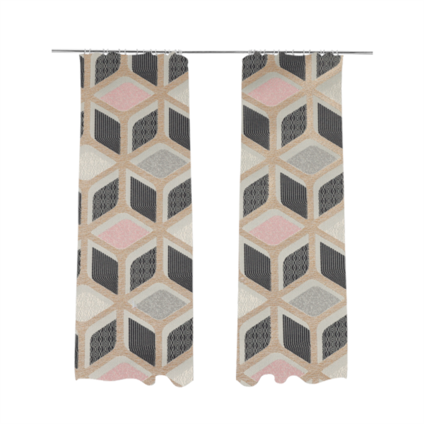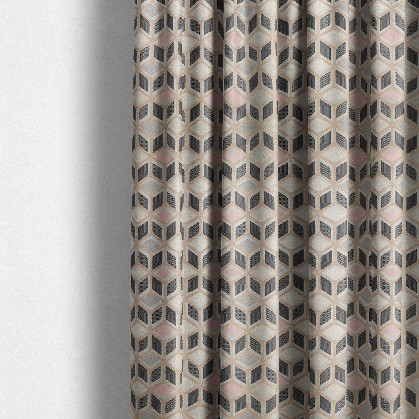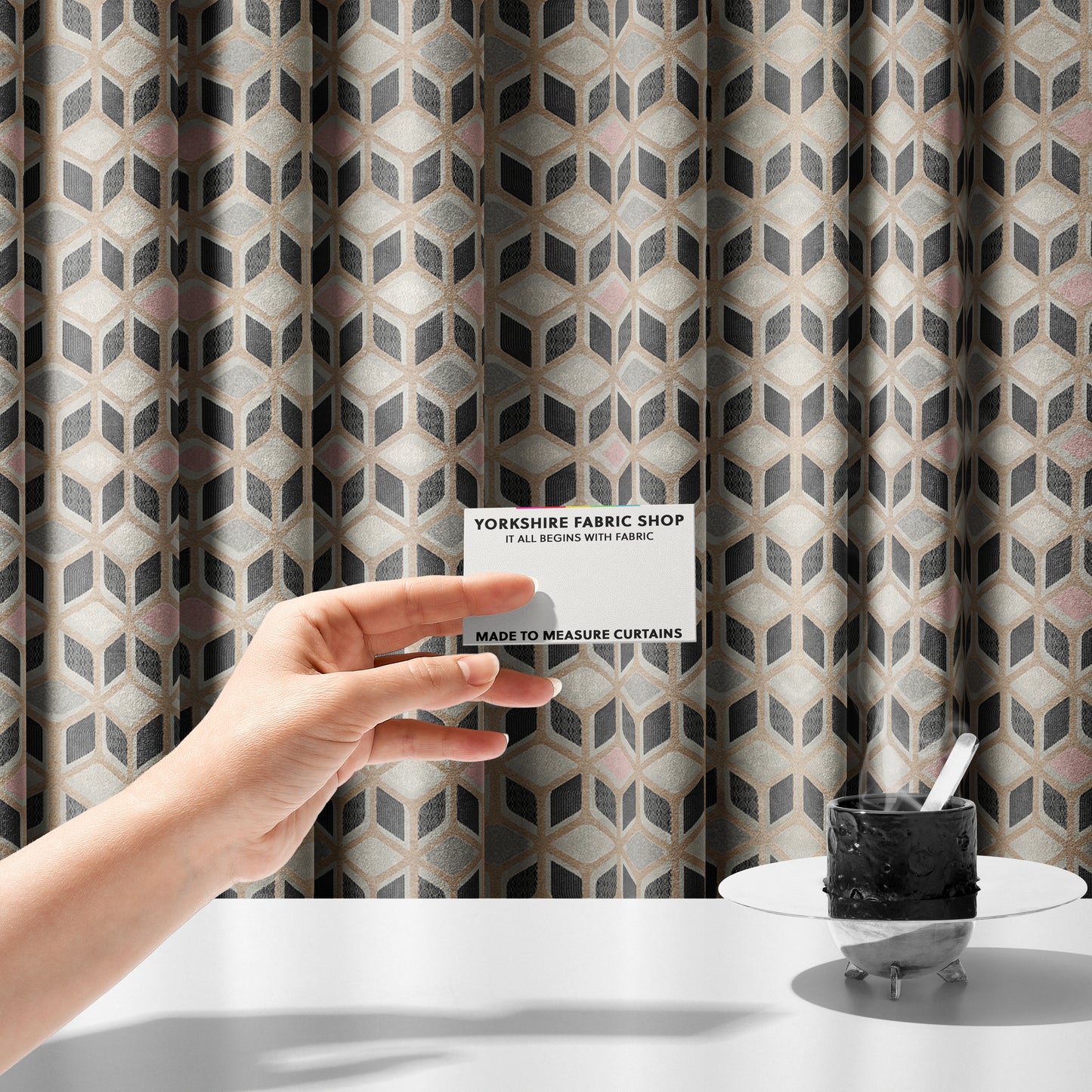 Elevate your space with our Oslo geometric pattern grey pink gold toned upholstery fabric. Made to measure curtains provide a tailored fit, while the unique pattern adds a touch of modern elegance. The high-quality fabric is durable and versatile, perfect for adding a pop of colour to any room.