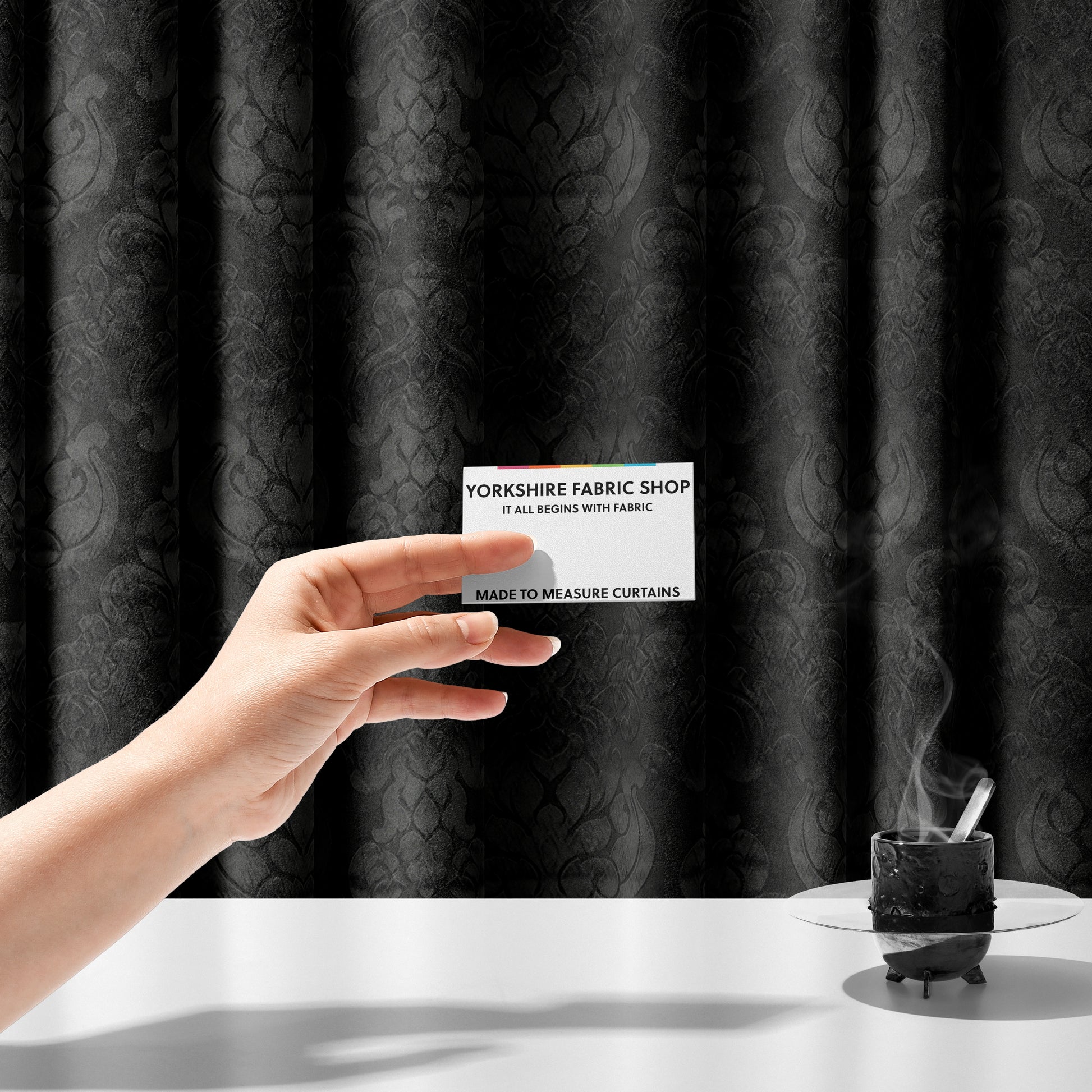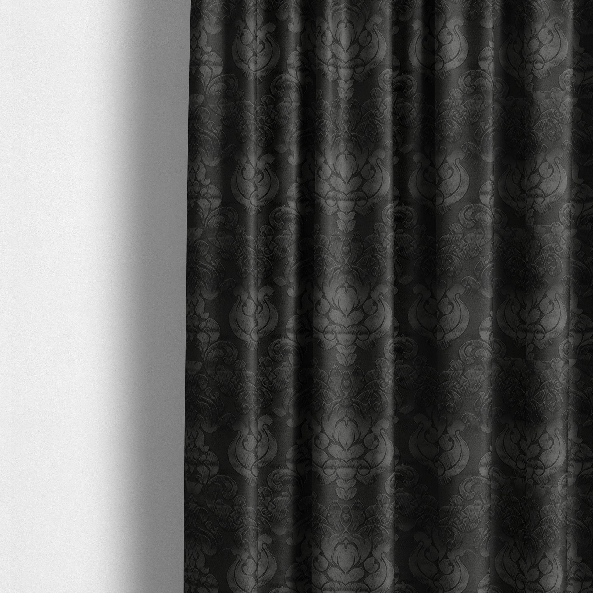 Enhance the elegance of your space with our Paradise damask pattern in black upholstery fabric ctr-2533. Its intricate design adds a touch of sophistication, while its quality upholstery material ensures durability and lasting beauty. Perfectly tailored to your measurements, these curtains bring both style and functionality to any room.