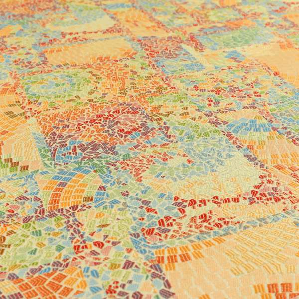 This Pasha stained mosaic pattern multicolour orange yellow chenille upholstery fabric is perfect for Roman blinds. The vibrant colours and durable chenille material will elevate any home decor. With its unique mosaic pattern, this fabric adds a touch of elegance to any space.