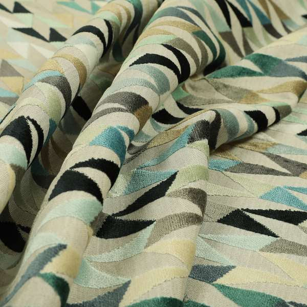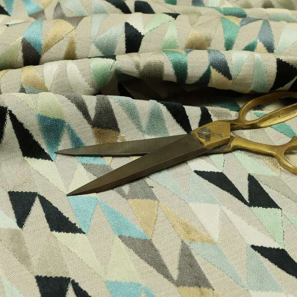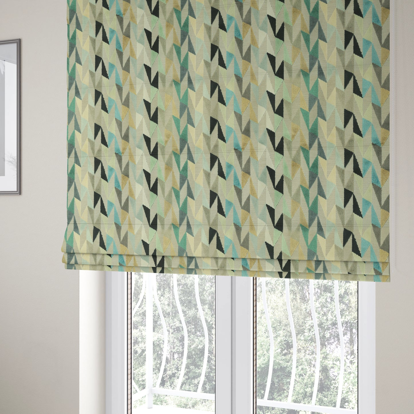 This elegant velvet upholstery fabric features a beautiful blend of pastel tones in blue, grey, teal, and white. The geometric pattern adds a touch of sophistication to any room. Perfect for Roman blinds, this fabric offers both style and function. Bring a modern touch to your home with JO-1307.