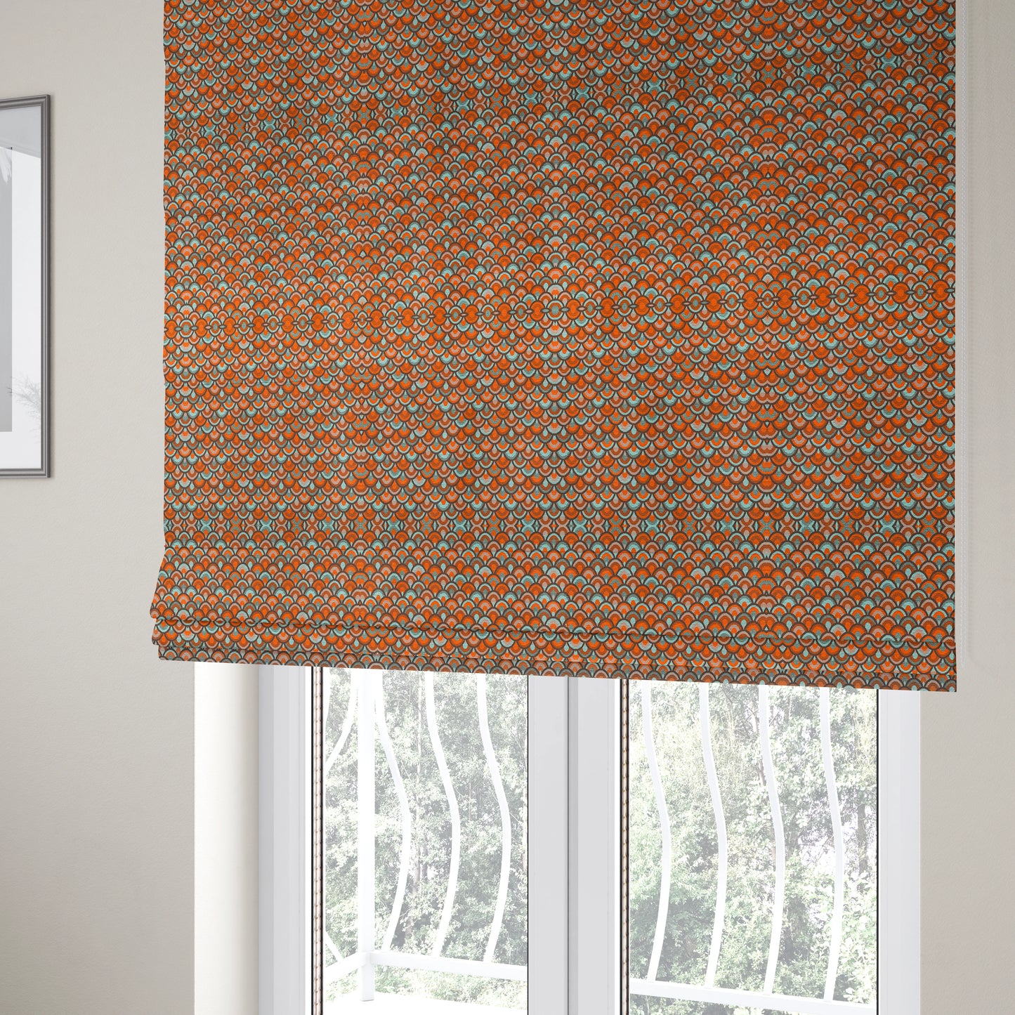 Peacock Pattern Collection In Smooth Finish Chenille Fabric In Blue Orange Colour Upholstery Fabric CTR-283 - Roman Blinds