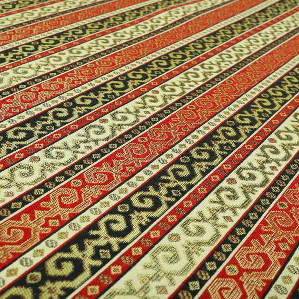 Introduce the rich cultural heritage of Greece into your home with our Persia aztec upholstery fabric. Made of soft chenille, this fabric features a striking stripe pattern in blue, white, and red. Perfect for creating elegant Roman blinds that will add a touch of sophistication to any space.