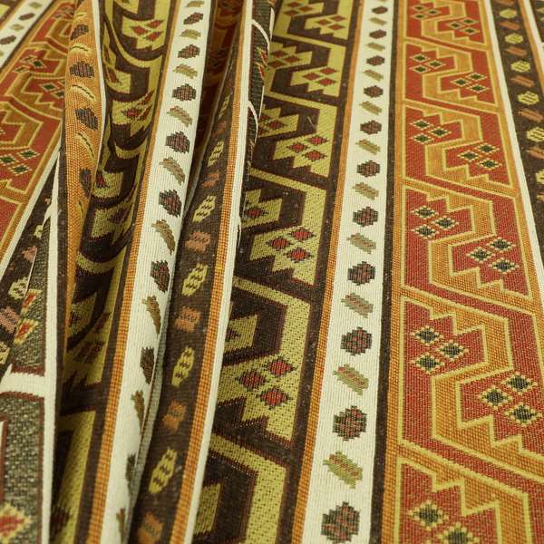 Introduce bold, rich colors and geometric patterns into your space with Persia aztec orange brown white chenille upholstery fabric geometric kilim stripe ctr-775 Roman blinds. This expertly crafted fabric offers a durable and stylish option for Roman blinds, adding a touch of sophistication to any room.