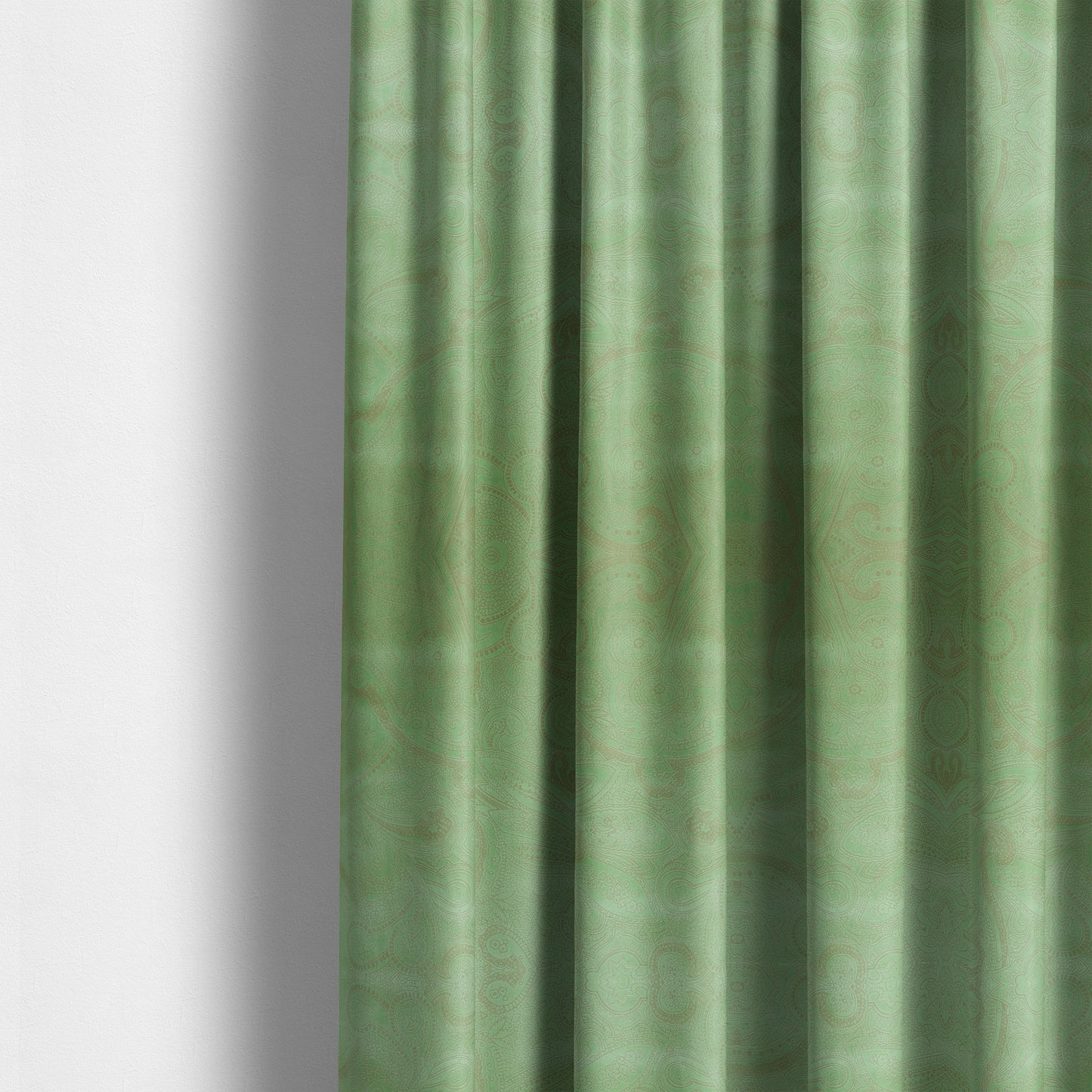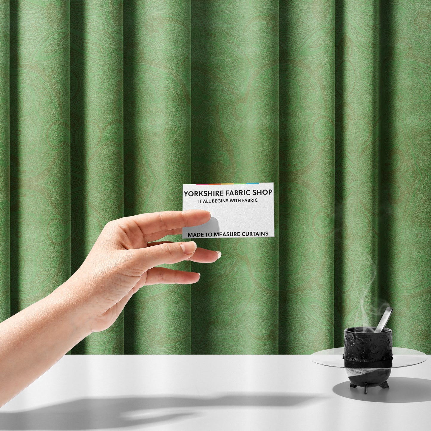 Enhance your home decor with Phoenix laser cut pattern soft velveteen apple green velvet material. Perfect for upholstery and curtains, this fabric adds a touch of luxury and elegance. Made to measure for a perfect fit. Transform any room into a sophisticated space with this high-quality fabric.