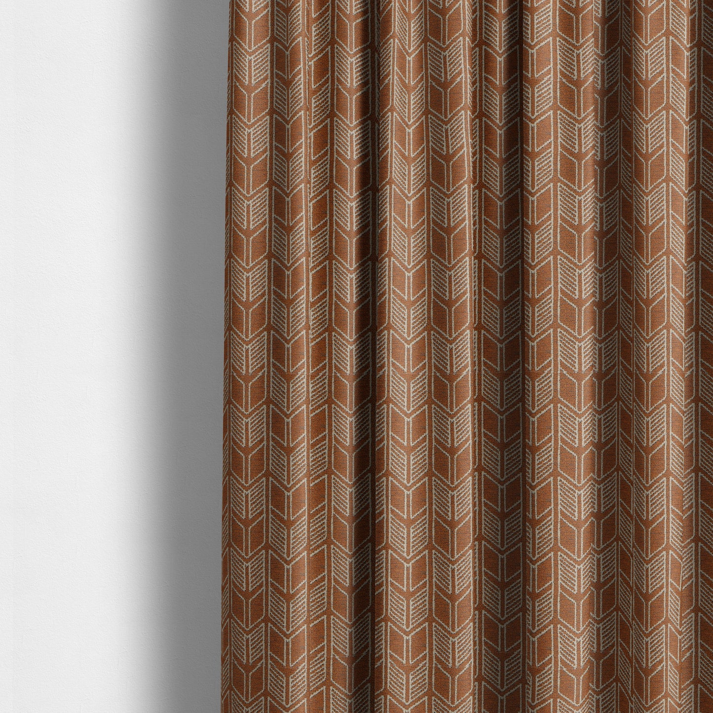 Upgrade your home decor with the Piccadilly collection. This luxurious fabric is expertly crafted to add a touch of sophistication to any room. Its geometric chevron pattern and vibrant orange colour will elevate your space with style and elegance. Perfect for custom-made curtains that are both functional and stylish.