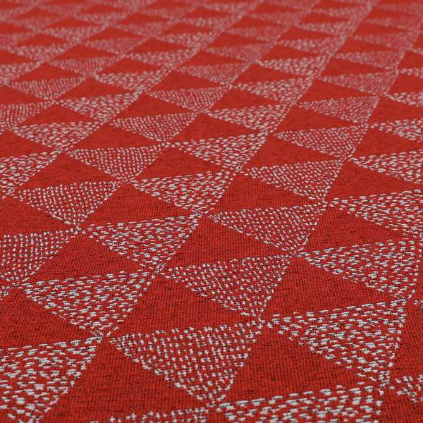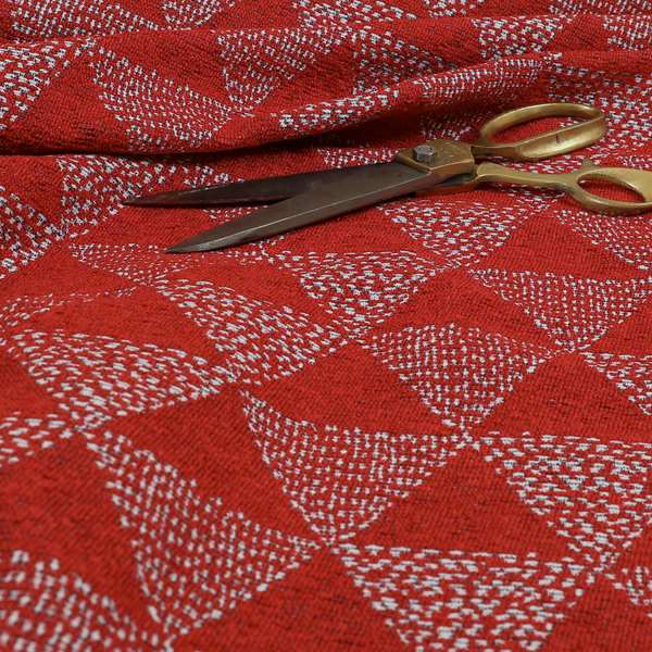 Experience the perfect blend of style and comfort with our Piccadilly collection Roman blinds. Made with high-quality woven upholstery, these blinds feature a stunning geometric triangle pattern in a bold red chenille fabric. Elevate the look of any room while enjoying the durability and functionality of our premium blinds.