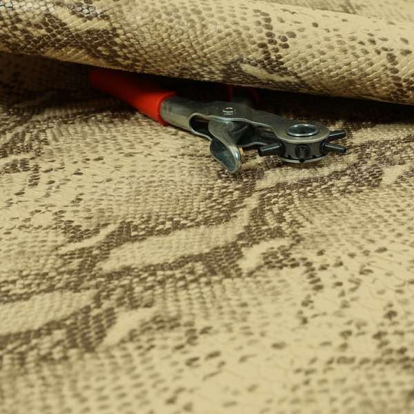 Experience the luxurious feel and unique look of our Python raise scales textured pattern wheat brown faux leather vinyl upholstery material. With its premium quality and durable design, this material will elevate any project and bring a touch of sophistication to your space. Perfect for upholstery, it offers both style and practicality.