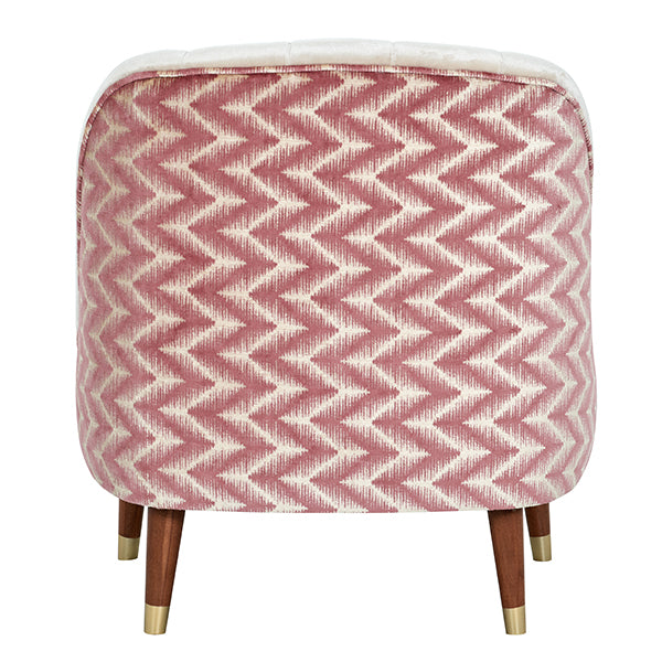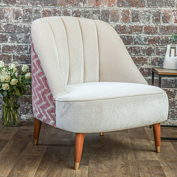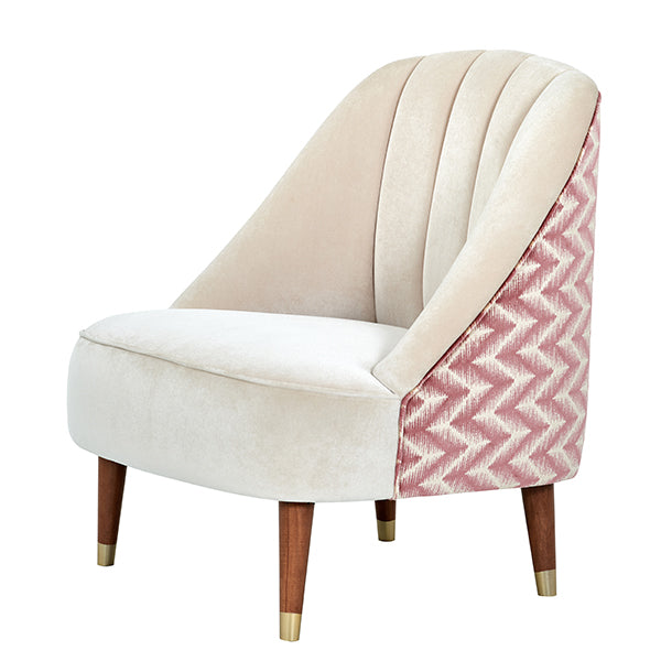 Traditional, with a twist? Raphael's got the hang of it. This accent chair's all smooth curves and premium plush cream velvet, and check out the shaped, brass-capped wooden legs. It's an effortless take on elegance. With a feature dusky rose pink zigzag velvet back fabric and exquisite piped detailing, the Raphael Velvet tub chair’s curved silhouette and subtle scalloped panel back draws attention to its elegant sophisticated shape. The result? A comfortable piece with a contemporary yet timeless feel. This chair features a high wraparound back to encase you as you relax, and will look great making a statement addition to your living room, a reading corner as well as by your dressing table.