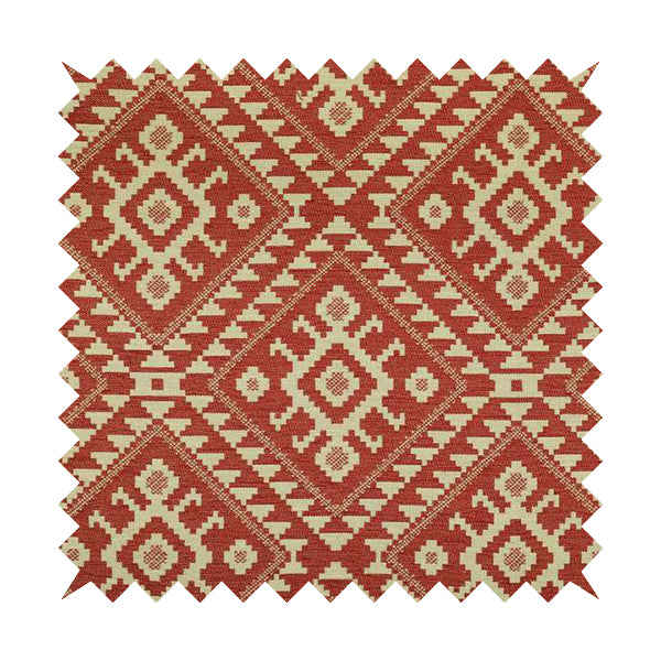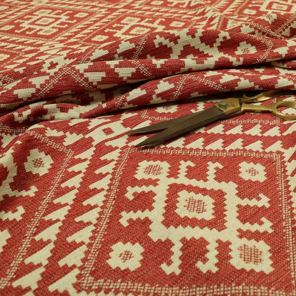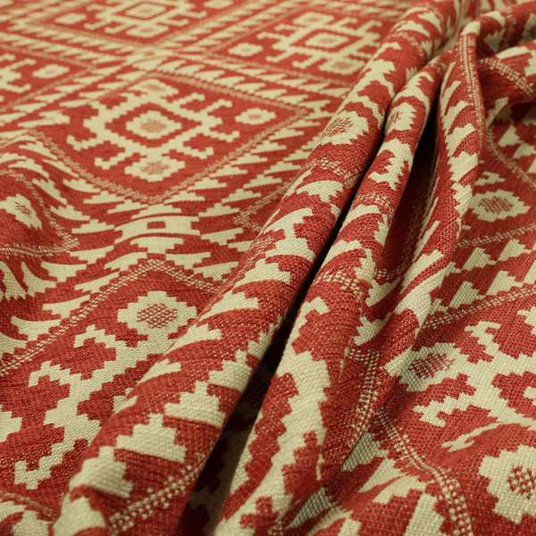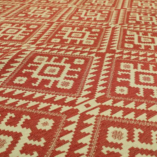 This red and cream coloured kilim tetris pattern fabric is perfect for furnishing and upholstering your home. With a bold and modern design, it will add a touch of style and sophistication to any room. Use it to create beautiful Roman blinds that will elevate your interior decor.