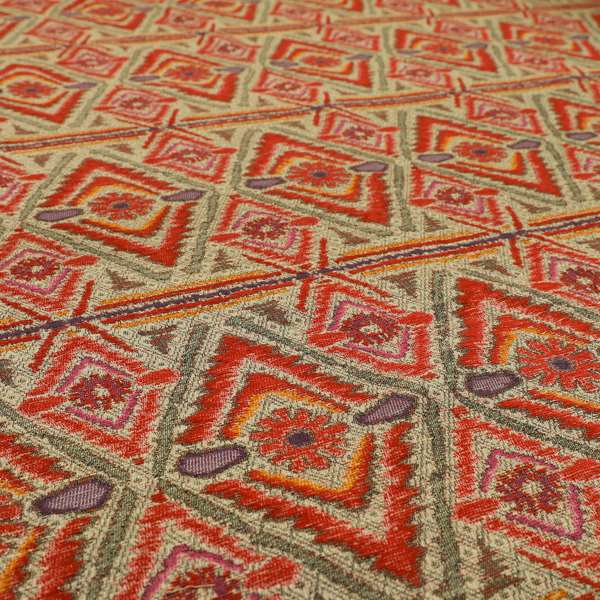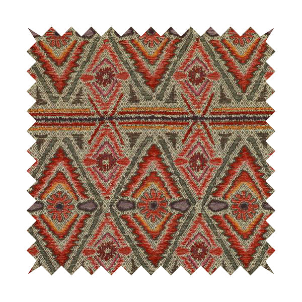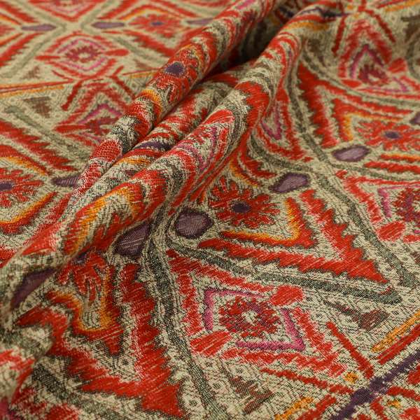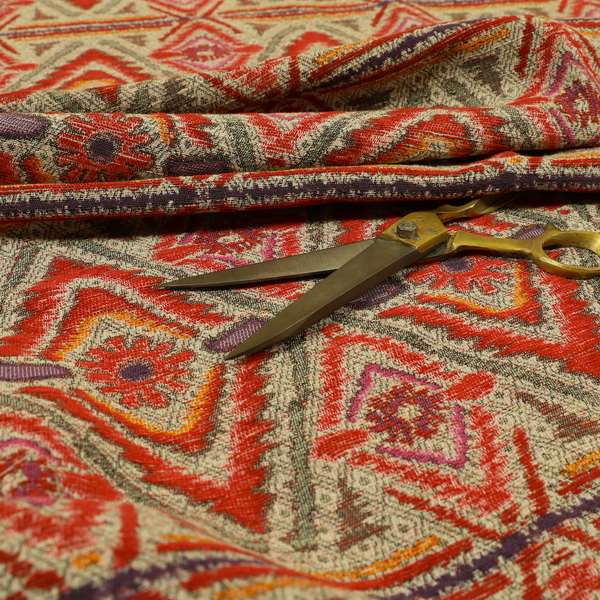 Introduce Aztec-inspired style to your home with this chenille upholstery fabric in striking red, orange, and purple tones. Perfect for creating Roman blinds, this versatile fabric adds warmth and texture to any room. Crafted with expert precision, it delivers both style and durability.