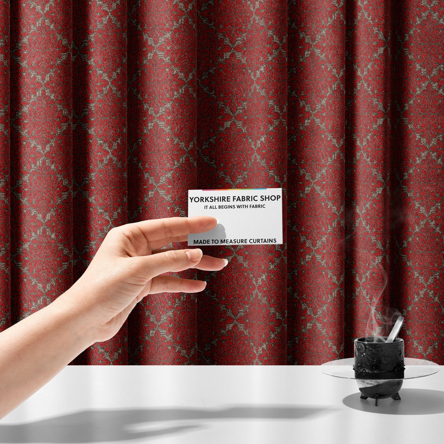 Expertly crafted in the Renieri fabric collection, these made to measure curtains add a touch of elegance to any room. Featuring a rich red-brown colour and a small medallion inspired pattern, these curtains are made with high-quality chenille upholstery fabric. Elevate your decor with this luxurious and customizable addition.