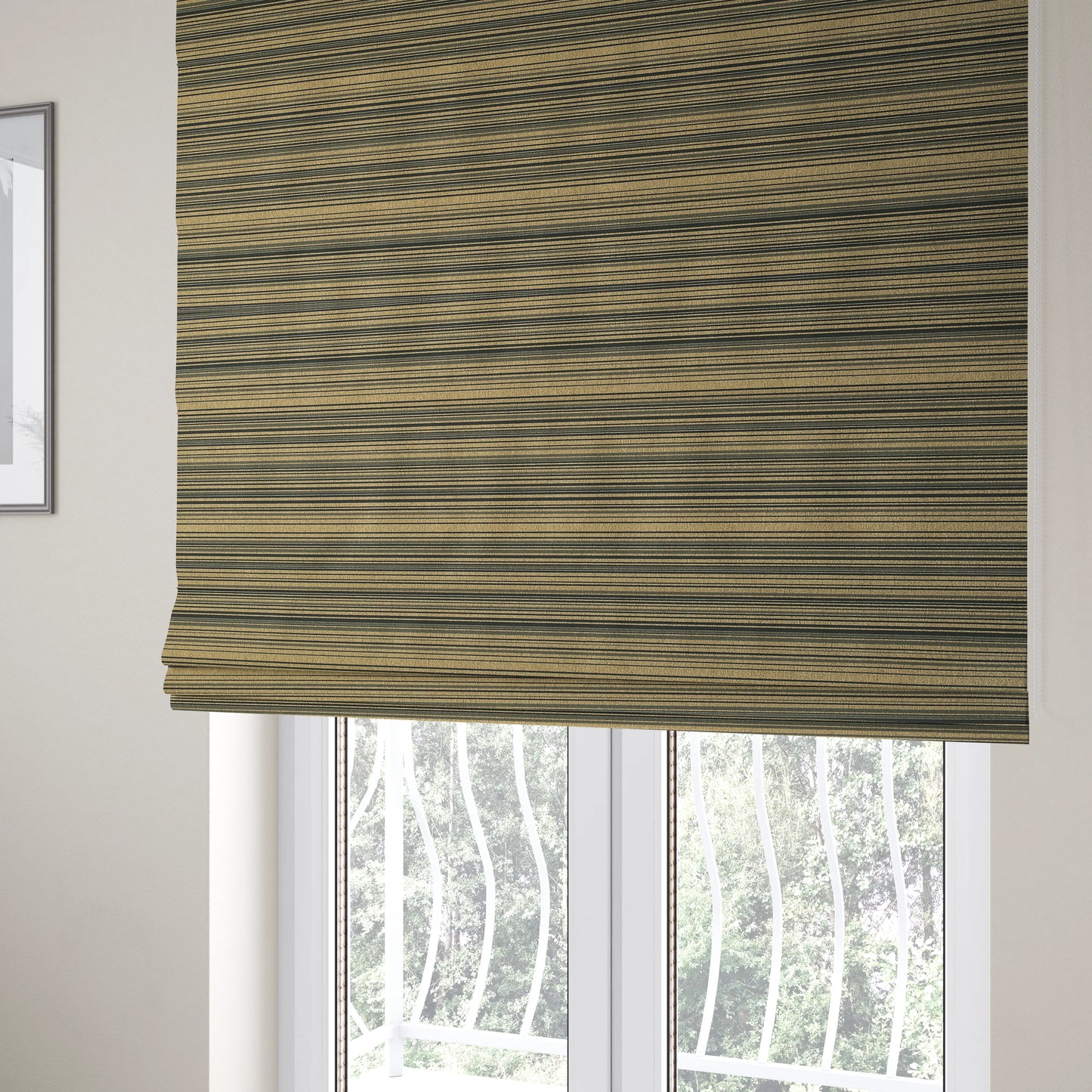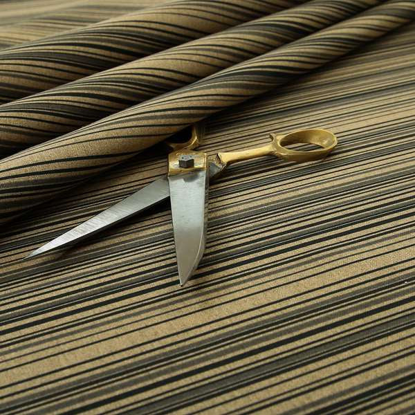 Expertly crafted with a soft, chenille material, the Samantha black striped design furnishing fabric adds a touch of sophistication to any room. The subtle brown tones provide a warm and welcoming feel, making it perfect for creating elegant Roman blinds. Upgrade your home decor with this luxurious fabric.