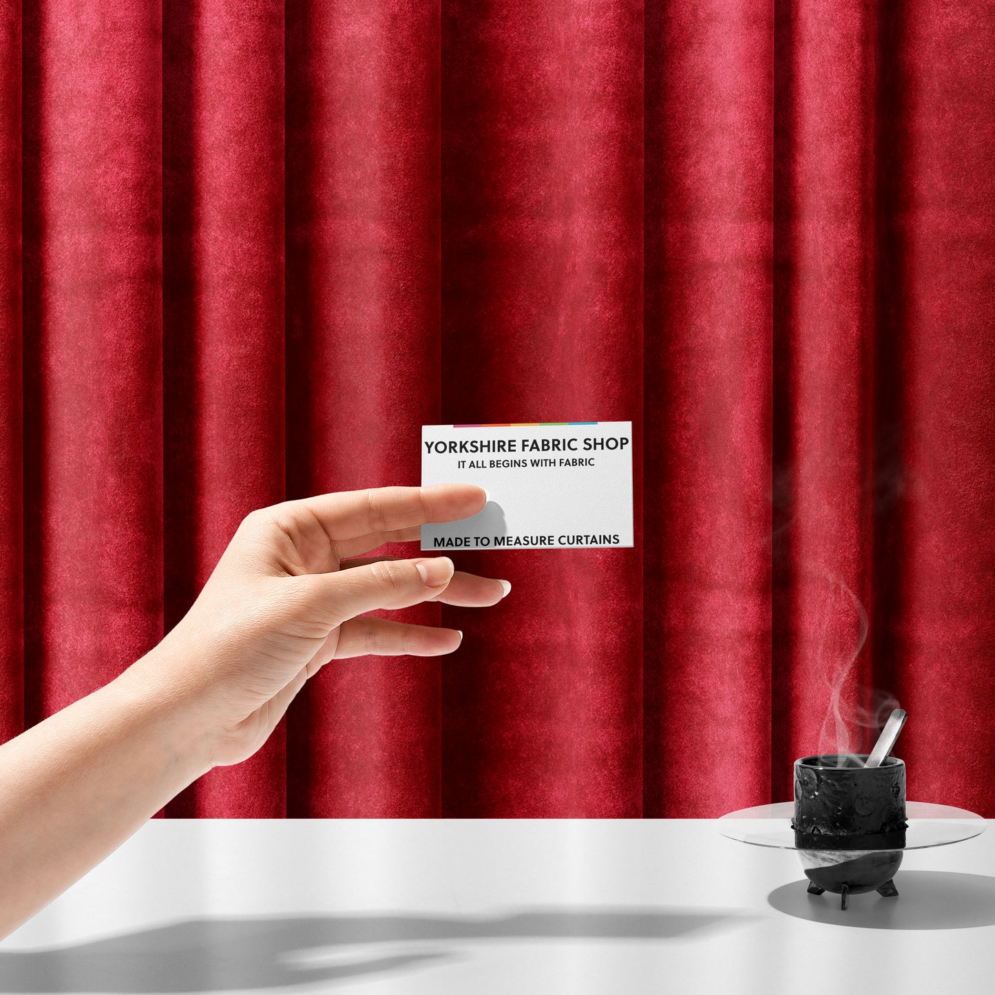Elevate your home decor with Savoy lustrous plain velvet upholstery fabric in red. The luxurious material adds a touch of elegance to any room while the made-to-measure curtains provide a perfect fit. Enhance your space with this high-quality, expertly-crafted product.