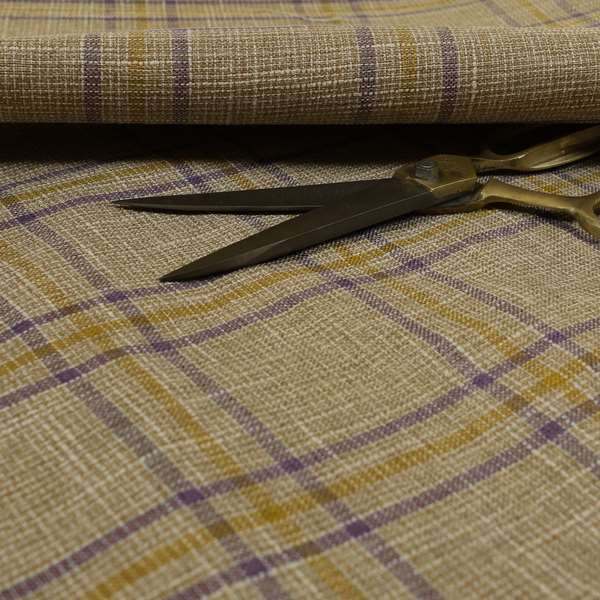 Introducing Shaldon woven tartan pattern upholstery fabric, a timeless and elegant touch for your home decor. Featuring a striking golden yellow background with a stunning purple woven tartan pattern, this fabric is perfect for creating beautiful Roman blinds that will elevate any room. Elevate your interior design with this luxurious and classic fabric.