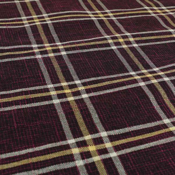 Elevate your home decor with our Shaldon woven tartan pattern upholstery fabric. The beautiful purple background with yellow accents adds a touch of sophistication to any room. Perfect for creating eye-catching Roman blinds, this fabric is both stylish and durable. Update your space with this British-inspired design.