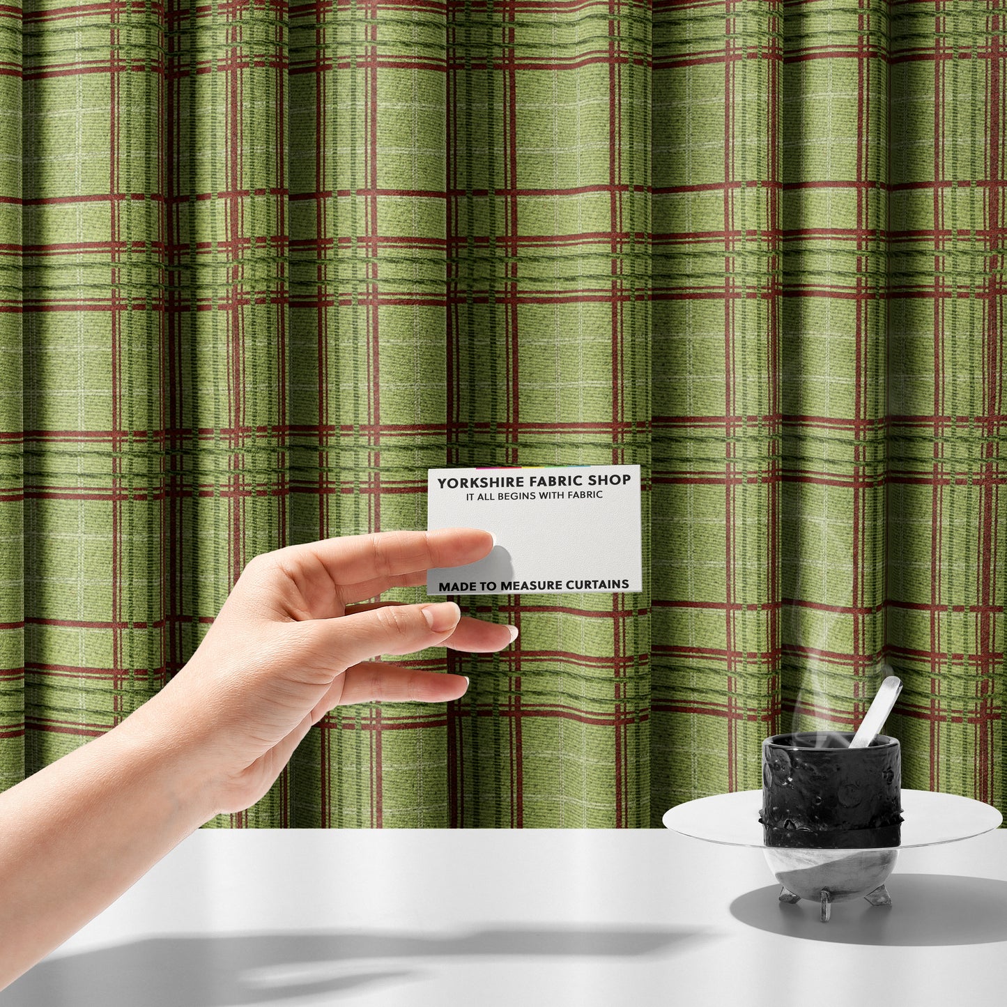 Elevate your home decor with our Sherbourne wool effect chenille green tartan plaid fabric. It's perfect for curtains and upholstery, adding a touch of elegance and coziness to any room. Made to measure for a perfect fit. Expertly crafted for long-lasting durability.