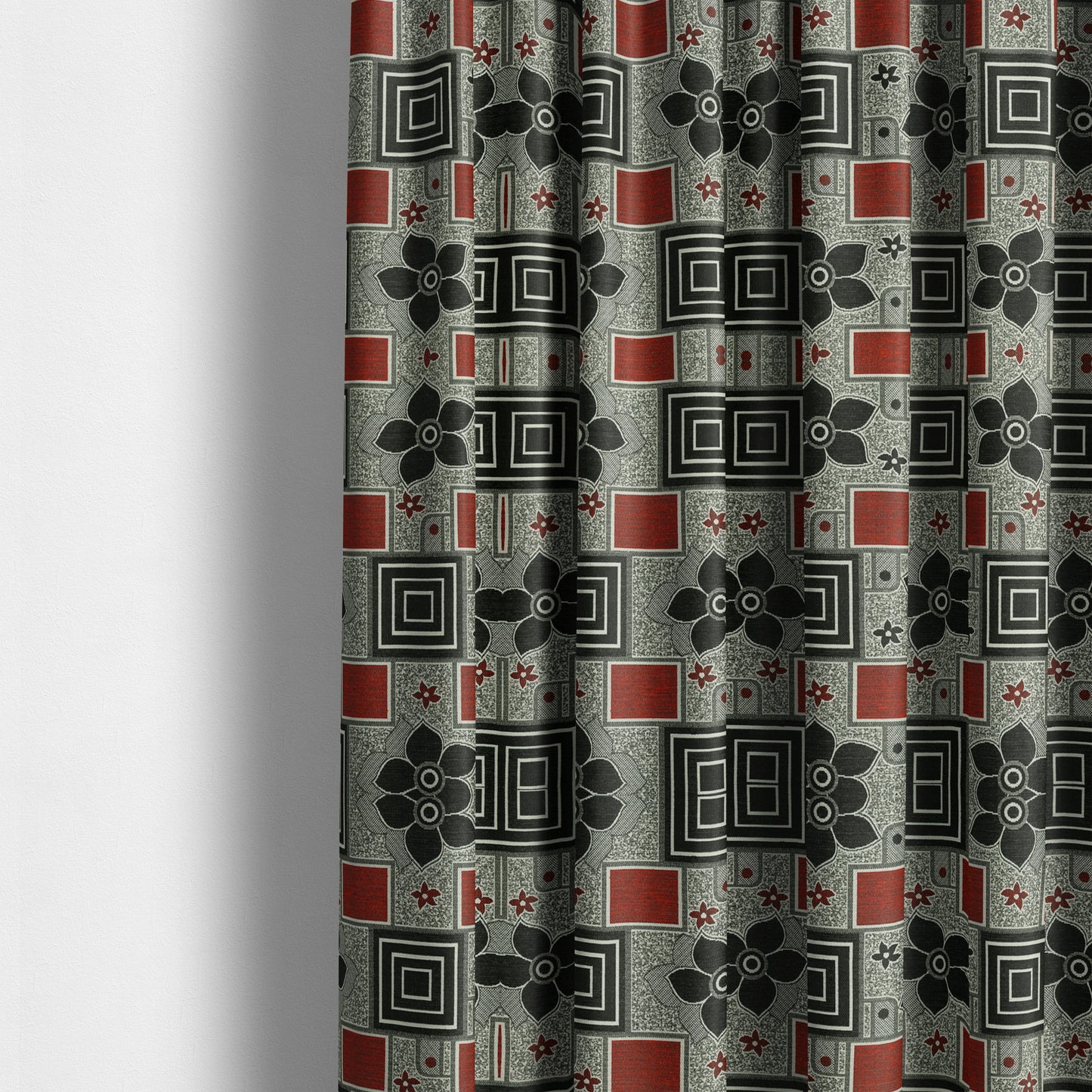 Expertly crafted and designed for a modern aesthetic, the Sitka furniture fabric features a bold floral patchwork pattern in shades of red, black, and grey. Made to measure curtains will elevate any room with an eye-catching pop of colour and style.
