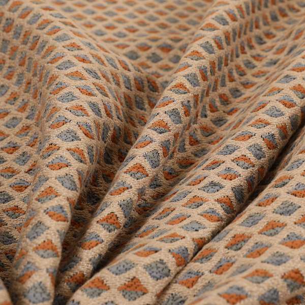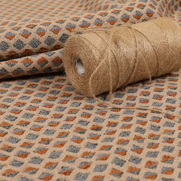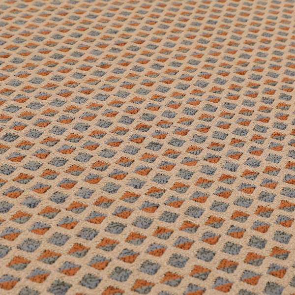 Discover the perfect addition to your home with our Small geometric pattern fabric JO-1379. The versatile Roman blinds feature a soft chenille fabric with a small geometric pattern in beige, blue, and orange. Elevate any room with this stylish and durable addition.