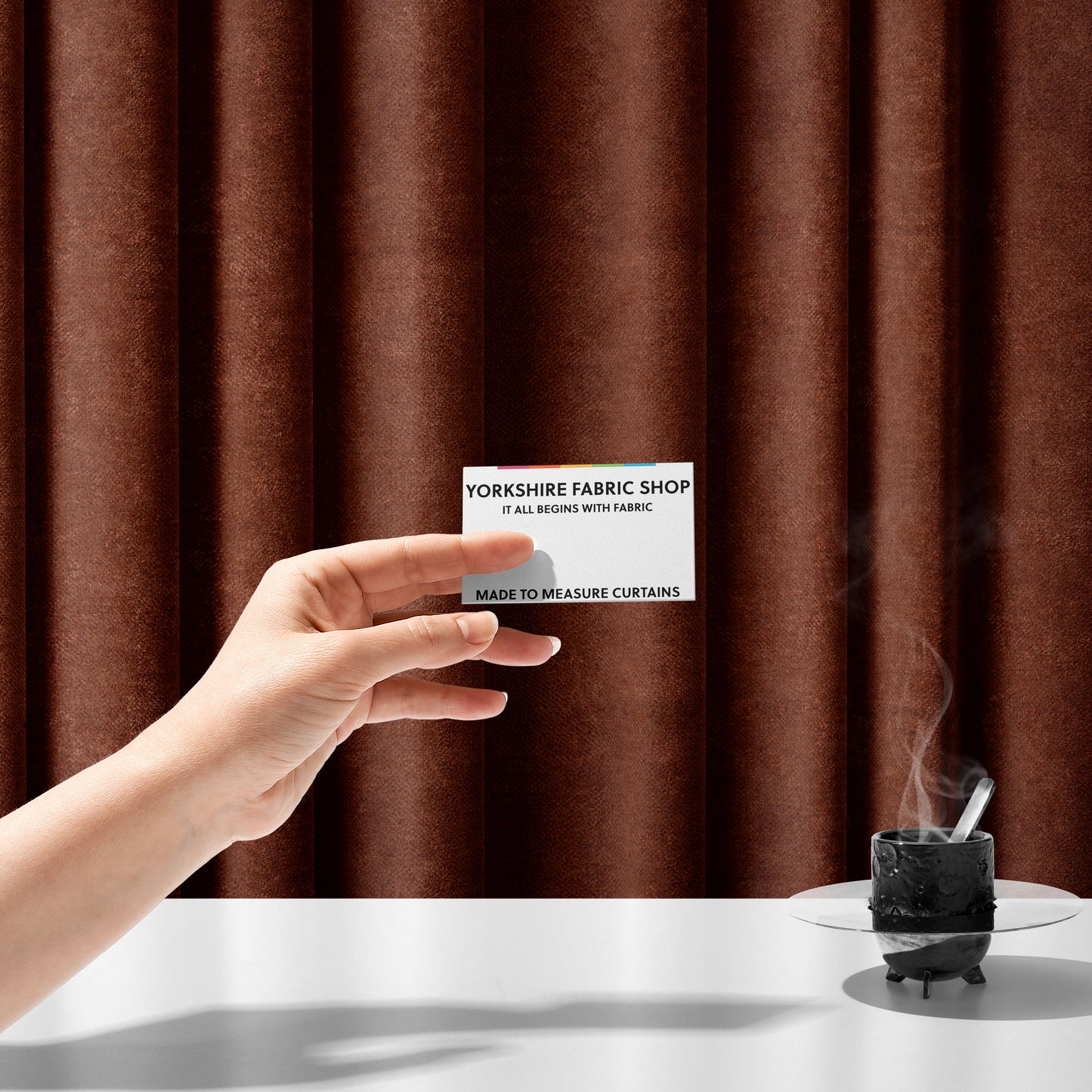 Introducing our Tessuto soft chenille upholstery fabric perfect for creating custom curtains that are both stylish and practical. This soft and durable fabric is water-repellent, ensuring long-lasting protection from spills and stains. The plain terracotta red design adds a pop of colour to any room.