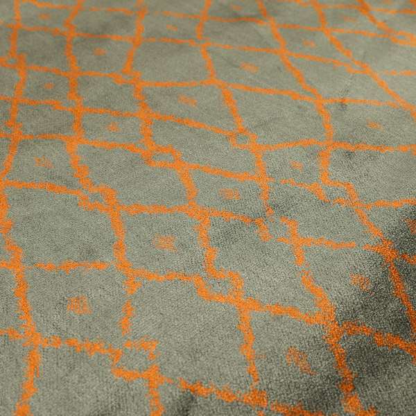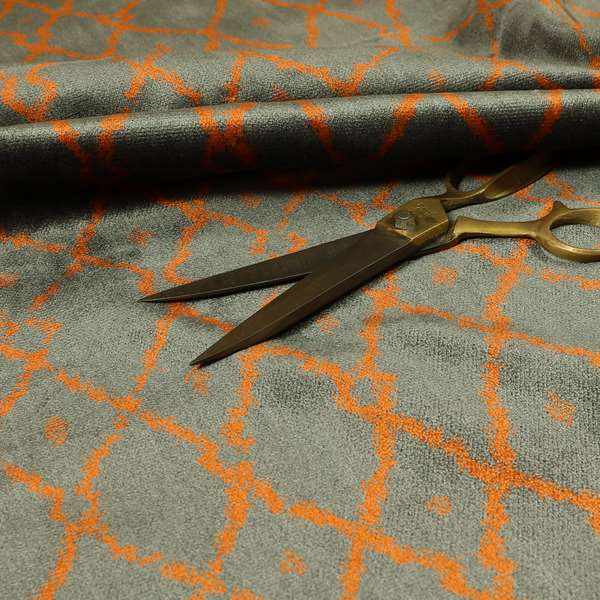 This versatile Trellis full pattern velvet upholstery fabric features a modern grey and orange colour scheme. Made with durable material, it is perfect for Roman blinds and adds a touch of sophistication to any room. The trellis design is both stylish and functional, providing privacy and light control.