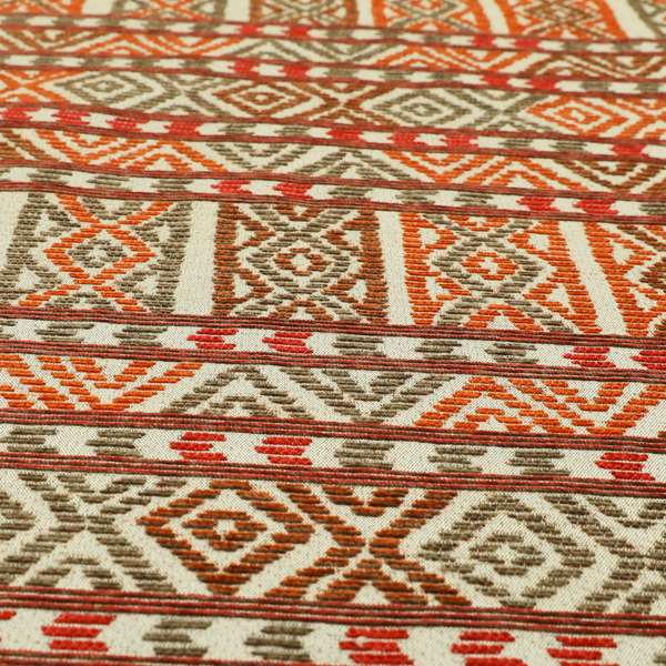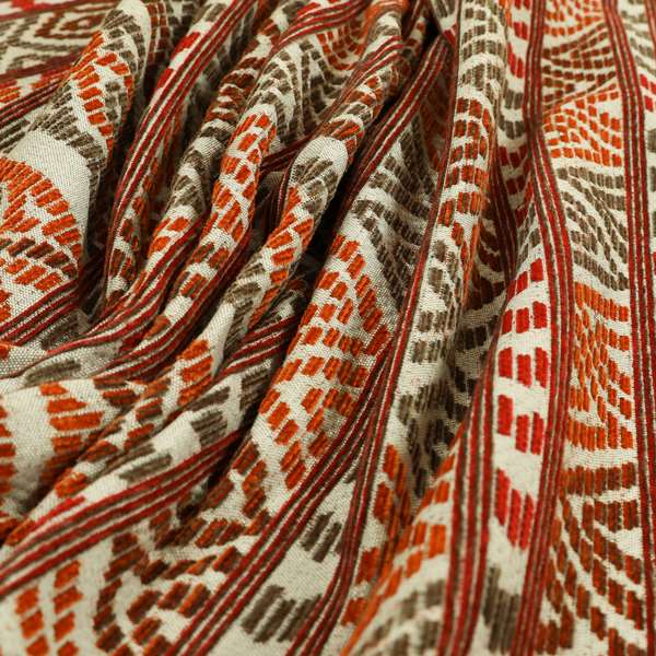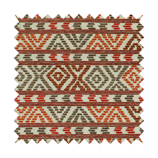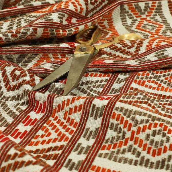 This chenille upholstery fabric features a vibrant tribal aztec pattern in shades of orange and red, perfect for adding a bold touch to your Roman blinds. Expertly crafted, this fabric is durable and versatile, making it an ideal choice for any interior design project.