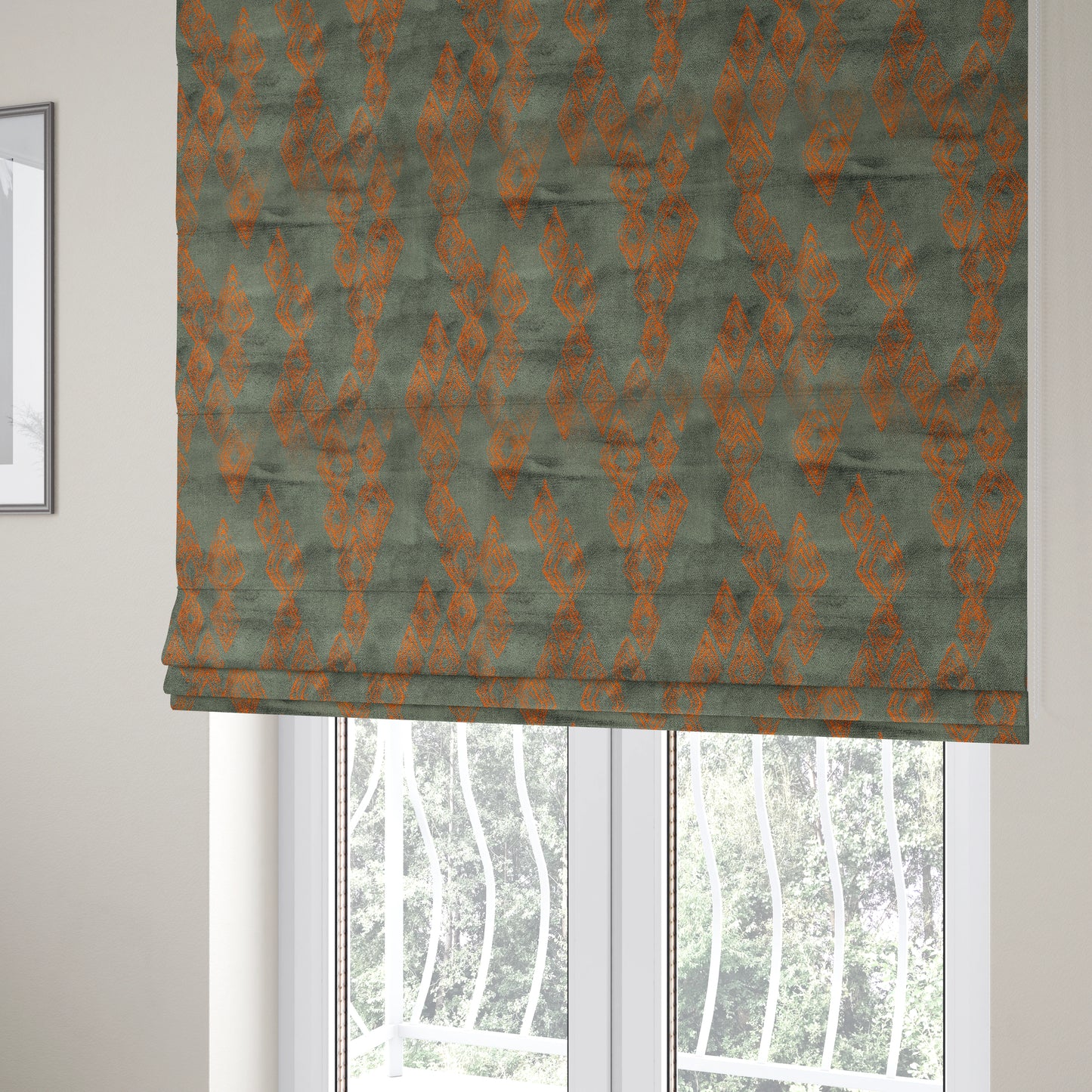Add a touch of culture and style to your home with our Tribal symbol pattern velvet grey with orange colour Roman blinds. Made with high-quality velvet and featuring a unique tribal symbol pattern, these blinds will elevate the look of any room. Enhance your decor while also blocking out unwanted light.