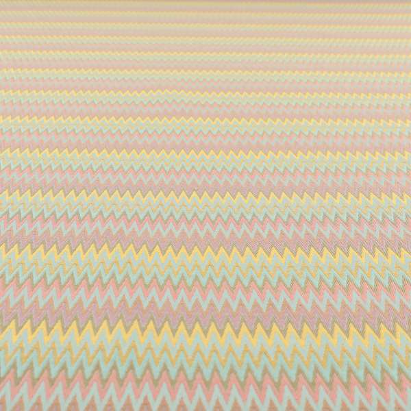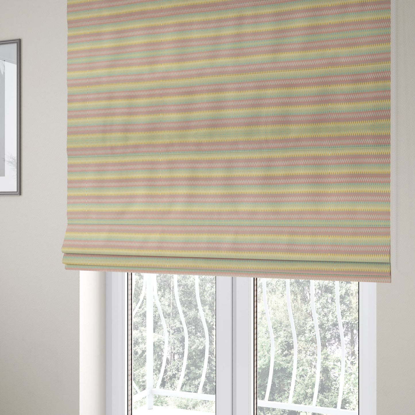 Experience the luxurious comfort and durability of our Tunis chevron pattern fabrics. Crafted from smooth finish chenille fabric, these fabrics feature a stylish pink, teal, and yellow colour scheme. Perfect for upholstery or creating Roman blinds, our ctr-279 fabric is sure to elevate the look of any space.