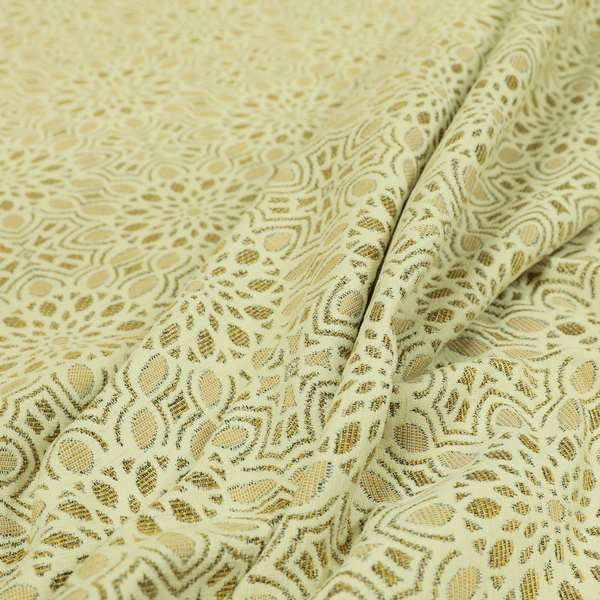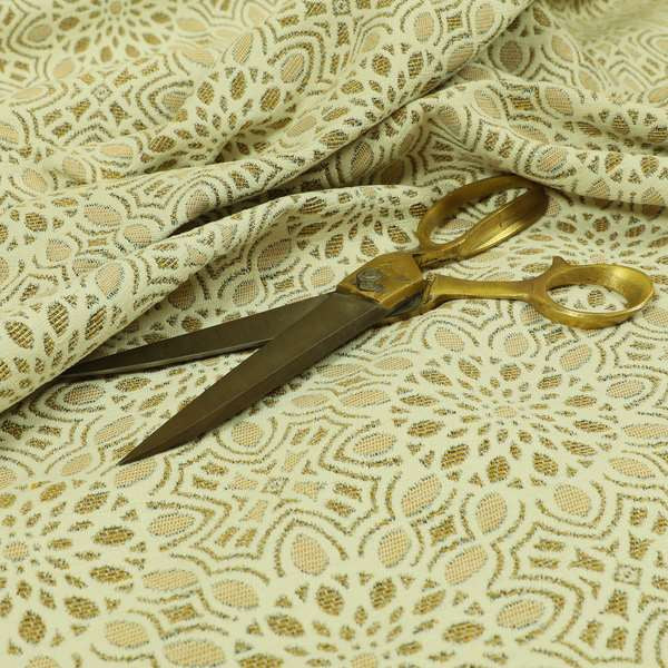 Expertly designed, these Roman blinds feature a uniformed medallion pattern theme in beige chenille jacquard fabric. Enhance your space with this sophisticated and timeless addition, offering both style and functionality for your windows.