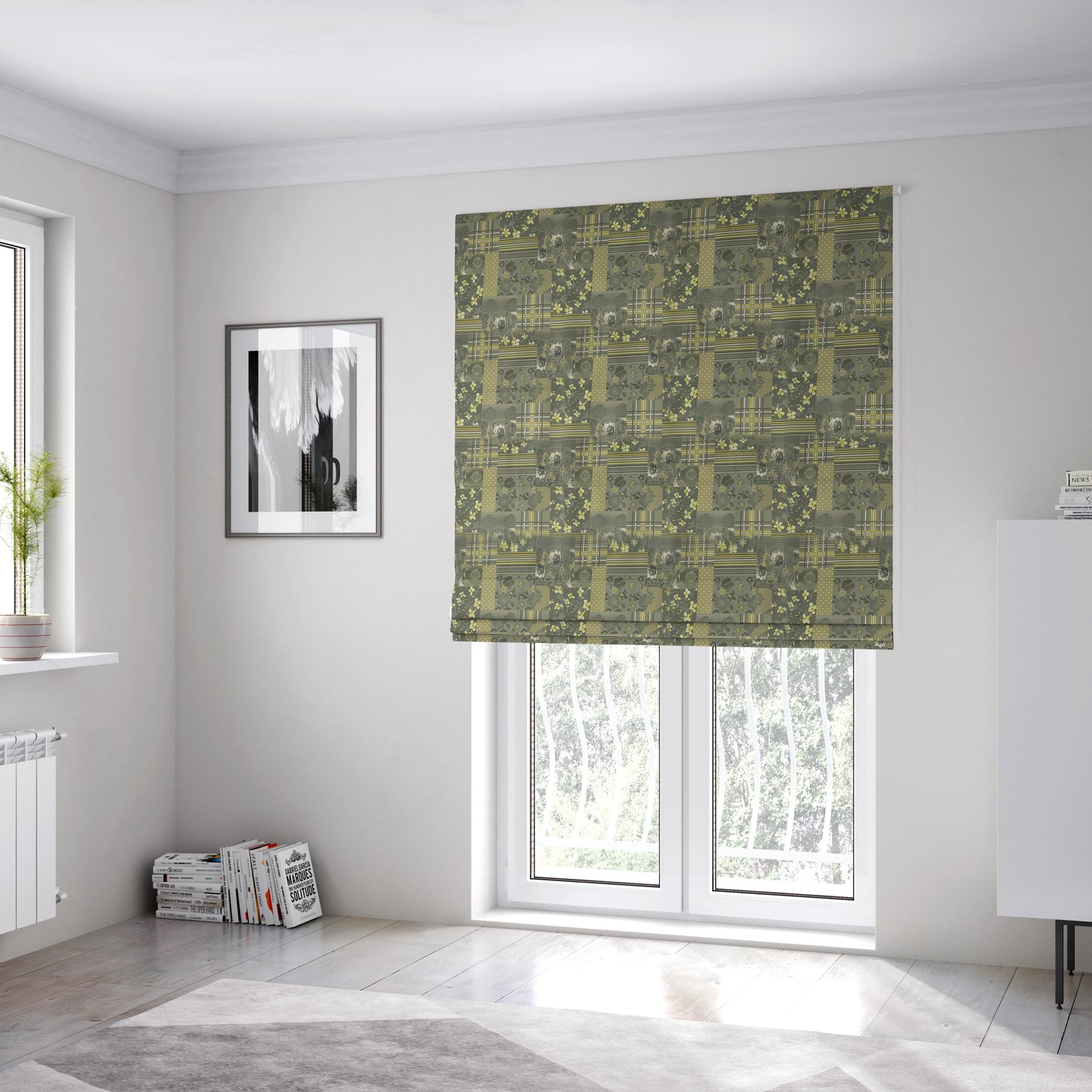 Introduce an elegant vibe in your home with Vanessa patchwork pattern grey green colour chenille upholstery curtain printed fabric. Sophisticated and versatile, this fabric can be used for both upholstery and Roman blinds. The patchwork pattern and chenille texture add a touch of luxury while the grey and green tones bring a calming effect to any space.