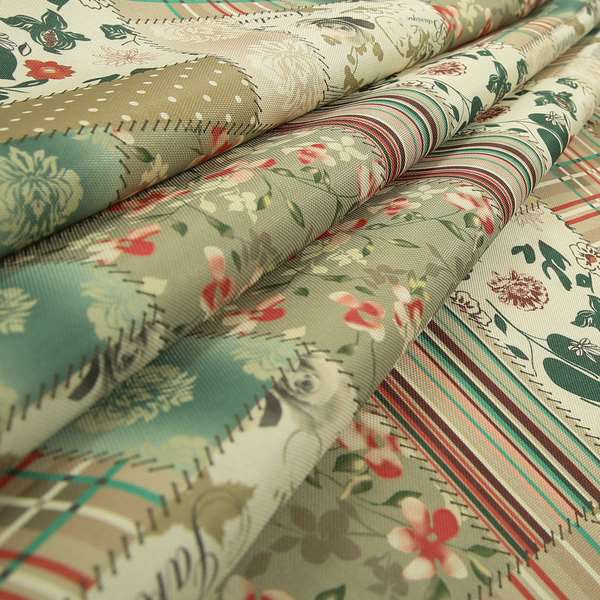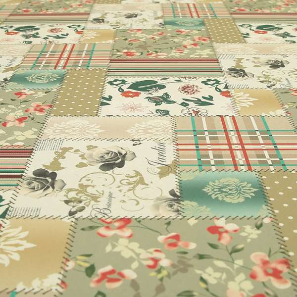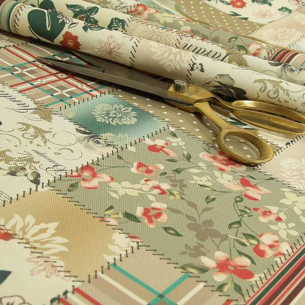 Enhance your home decor with Vanessa Patchwork pattern natural pink colour chenille upholstery curtain printed fabric. The unique patchwork pattern adds a touch of elegance to any room, while the chenille upholstery provides a luxurious feel. Perfect for Roman blinds, this fabric will elevate your windows while offering privacy and UV protection.