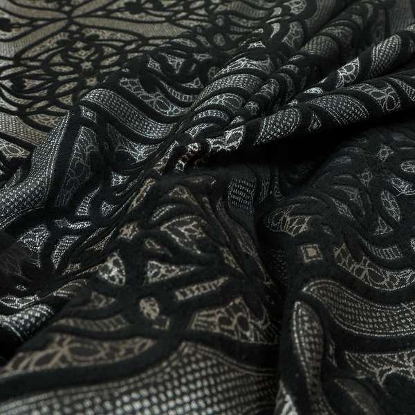 Experience luxury and elegance with our Vegas Roman blinds. Made with soft chenille upholstery fabric, these blinds feature a stunning geometric pattern with a silver shine effect. Enhance any room with its large medallion design and enjoy the added benefits of ultimate privacy and light control.