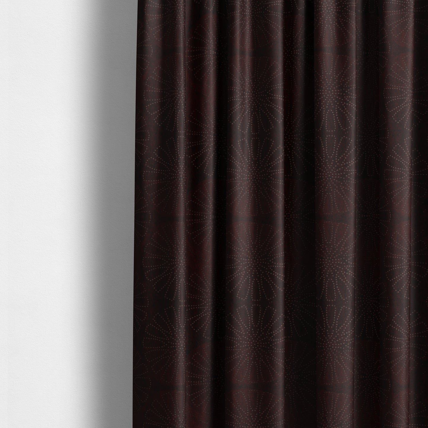 Elevate your decor with Vegas, a soft chenille upholstery fabric featuring a unique geometric floral pattern in deep wine plum. The subtle shine effect adds a touch of elegance to any room. Made to measure curtains ensure a perfect fit. Transform your space with the sophisticated charm of Vegas.